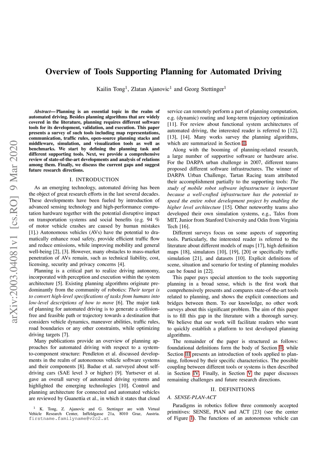 Overview of Tools Supporting Planning for Automated Driving