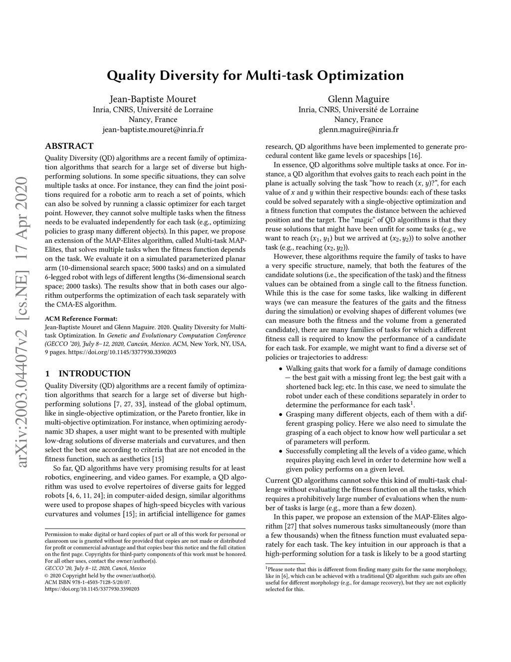 Quality Diversity (QD) algorithms are a recent family of optimization algorithms that search for a large set of diverse but high-performing solutions. In some specific situations, they can solve multiple tasks at once. For instance, they can find the joint positions required for a robotic arm to reach a set of points, which can also be solved by running a classic optimizer for each target point. However, they cannot solve multiple tasks when the fitness needs to be evaluated independently for each task (e.g., optimizing policies to grasp many different objects). In this paper, we propose an extension of the MAP-Elites algorithm, called Multi-task MAP-Elites, that solves multiple tasks when the fitness function depends on the task. We evaluate it on a simulated parameterized planar arm (10-dimensional search space; 5000 tasks) and on a simulated 6-legged robot with legs of different lengths (36-dimensional search space; 2000 tasks). The results show that in both cases our algorithm outperforms the optimization of each task separately with the CMA-ES algorithm.