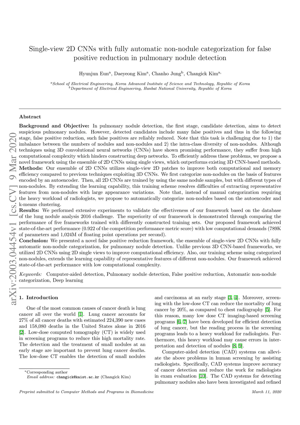 False Positive Reduction in Pulmonary Nodule Detection