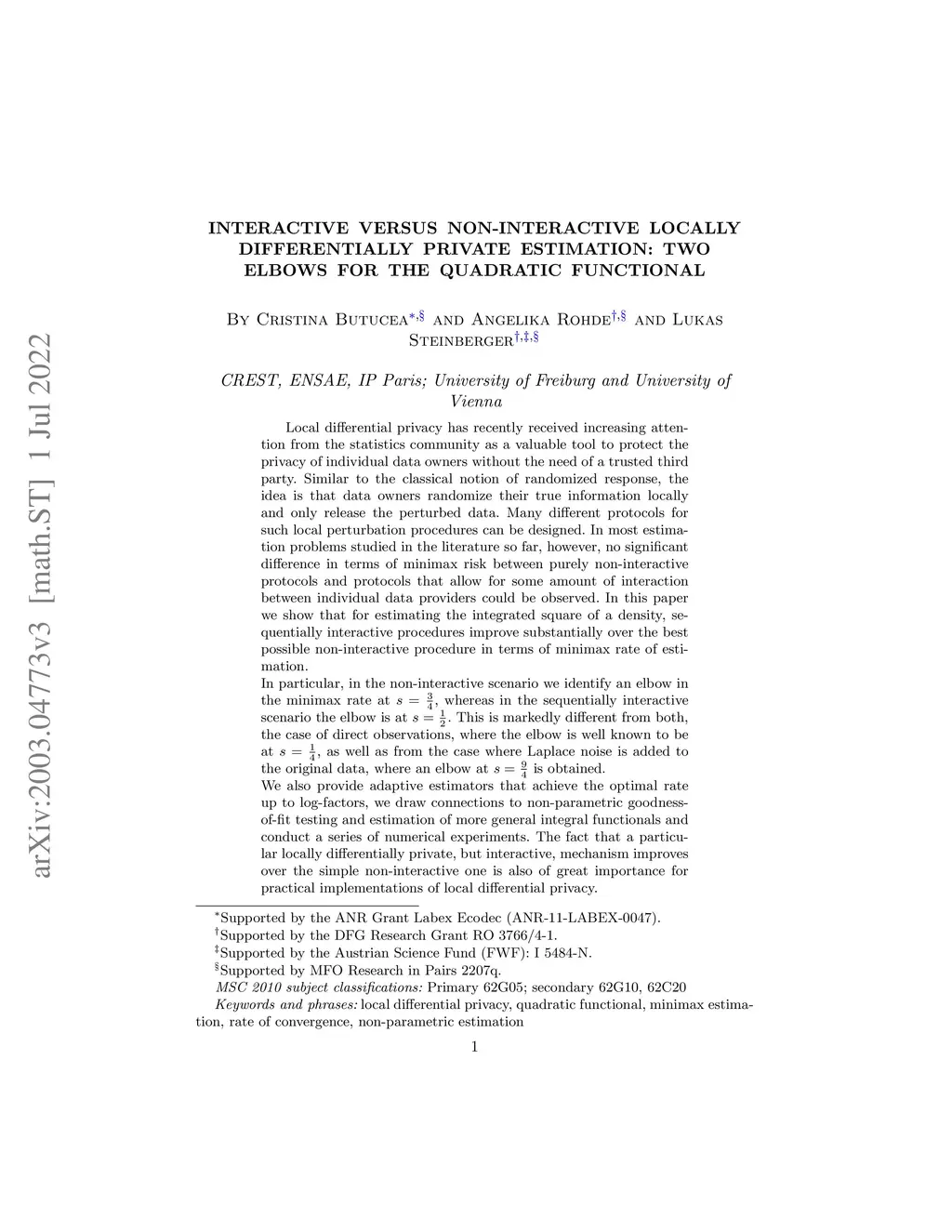 estimation: Two elbows for the quadratic functional
