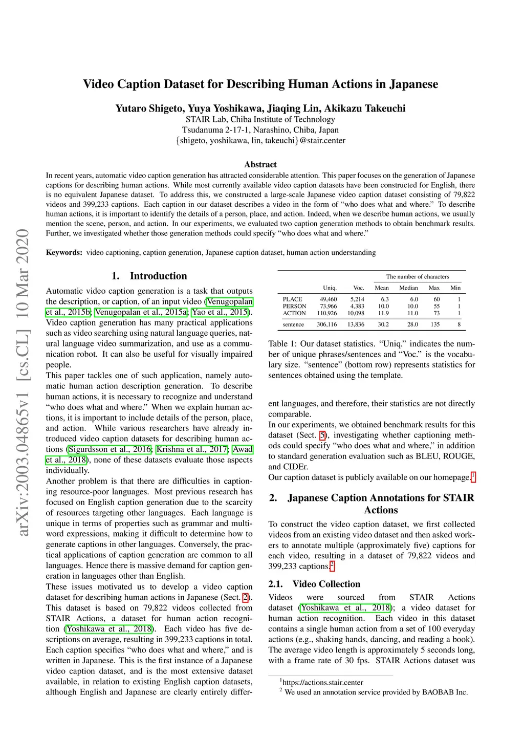 Video Caption Dataset for Describing Human Actions in Japanese