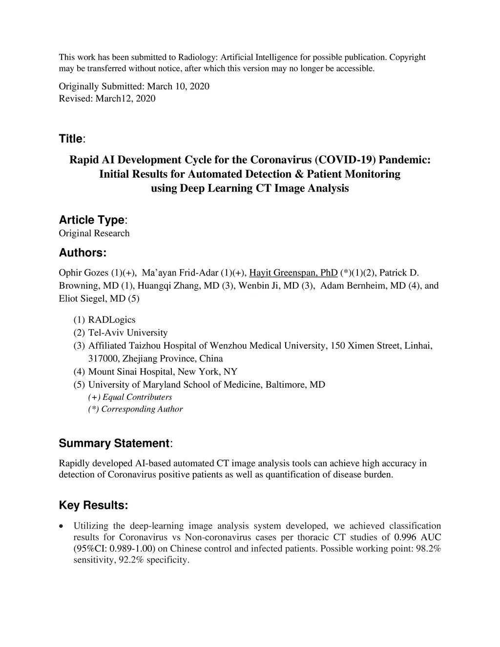Rapid AI Development Cycle for the Coronavirus (COVID-19) Pandemic: