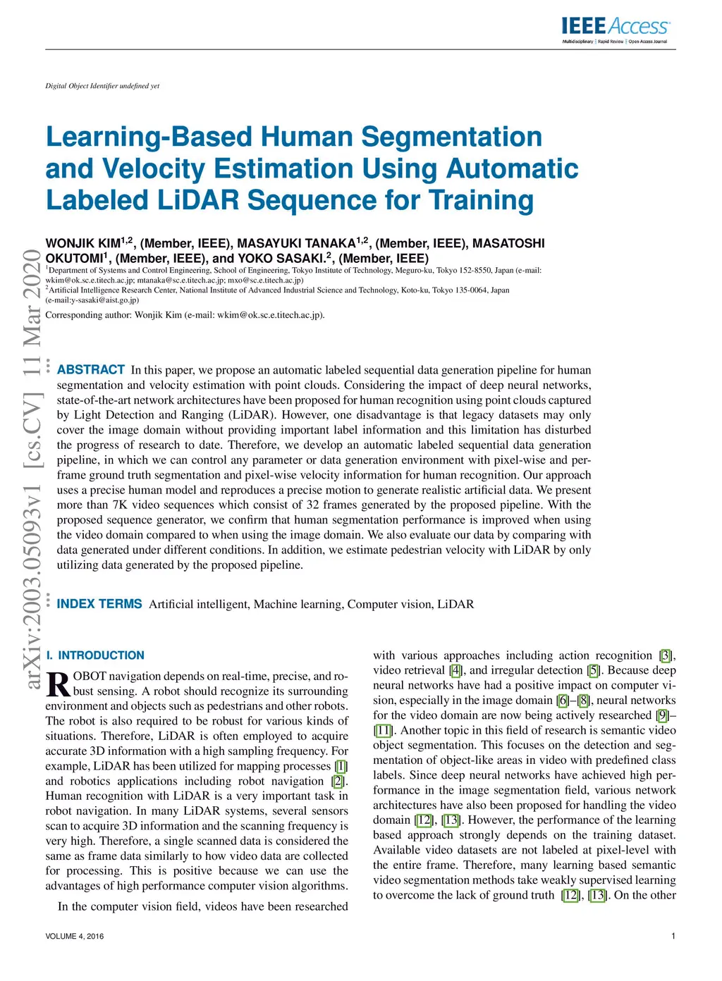 Learning-Based Human Segmentation and Velocity Estimation Using
