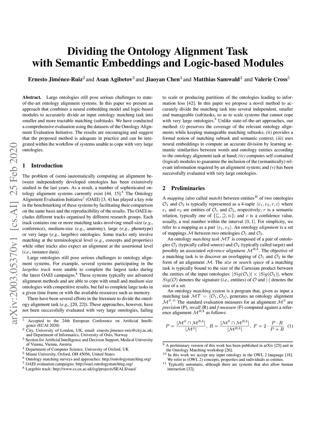 Dividing the Ontology Alignment Task with Semantic Embeddings and