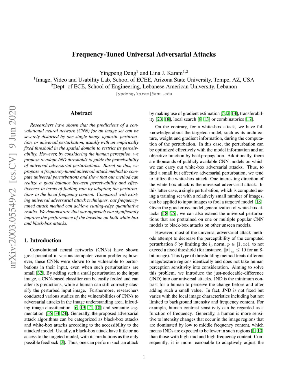 Researchers have shown that the predictions of a convolutional neural network (CNN) for an image set can be severely distorted by one single image-agnostic perturbation, or universal perturbation, usually with an empirically fixed threshold in the spatial domain to restrict its perceivability. However, by considering the human perception, we propose to adopt JND thresholds to guide the perceivability of universal adversarial perturbations. Based on this, we propose a frequency-tuned universal attack method to compute universal perturbations and show that our method can realize a good balance between perceivability and effectiveness in terms of fooling rate by adapting the perturbations to the local frequency content. Compared with existing universal adversarial attack techniques, our frequency-tuned attack method can achieve cutting-edge quantitative results. We demonstrate that our approach can significantly improve the performance of the baseline on both white-box and black-box attacks.