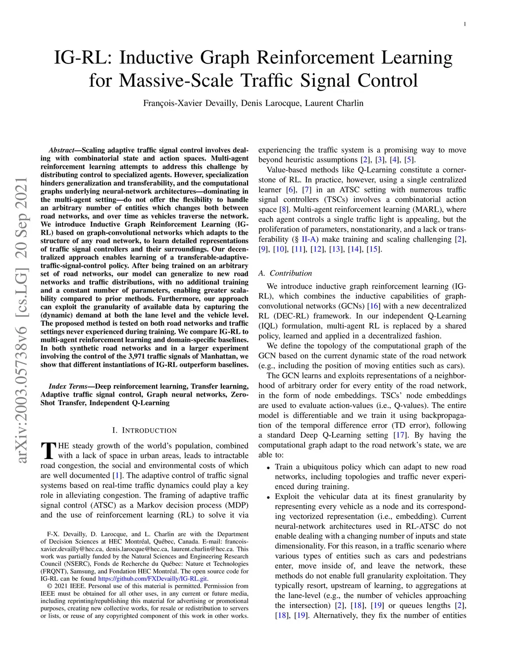 IG-RL: Inductive Graph Reinforcement Learning for Massive-Scale Traffic