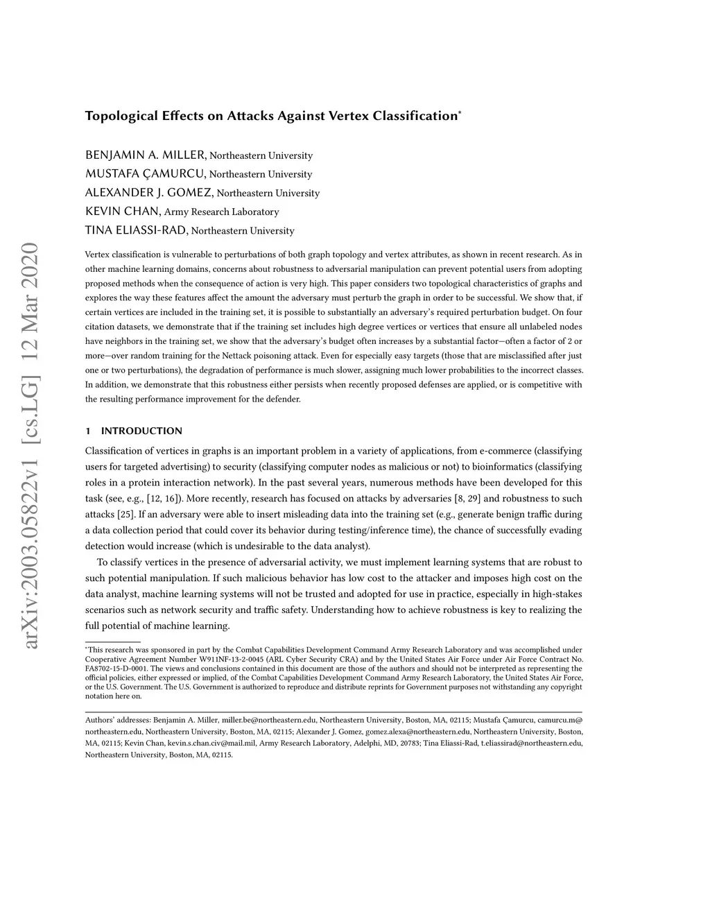 Topological Effects on Attacks Against Vertex Classification