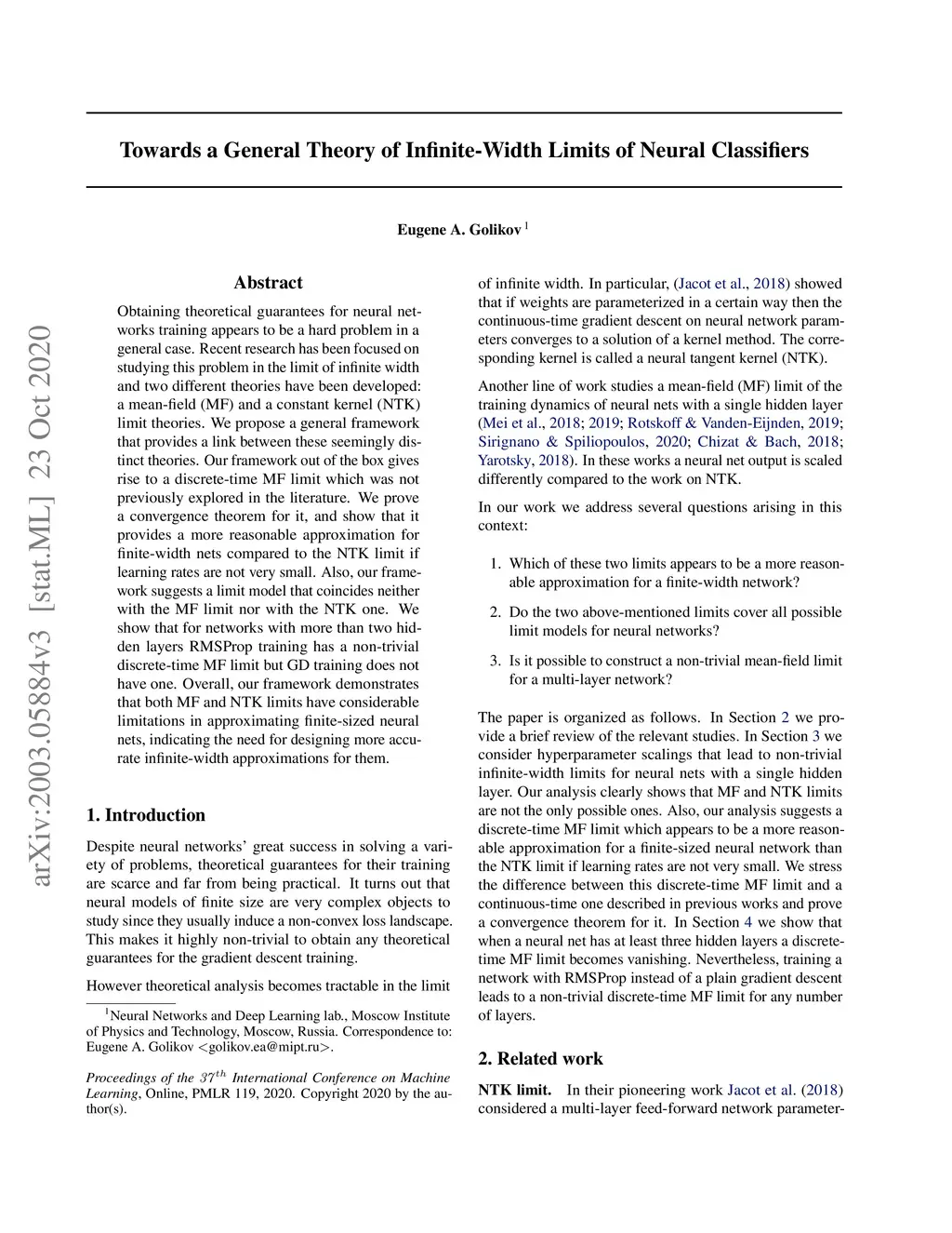 Towards a General Theory of Infinite-Width Limits of Neural Classifiers