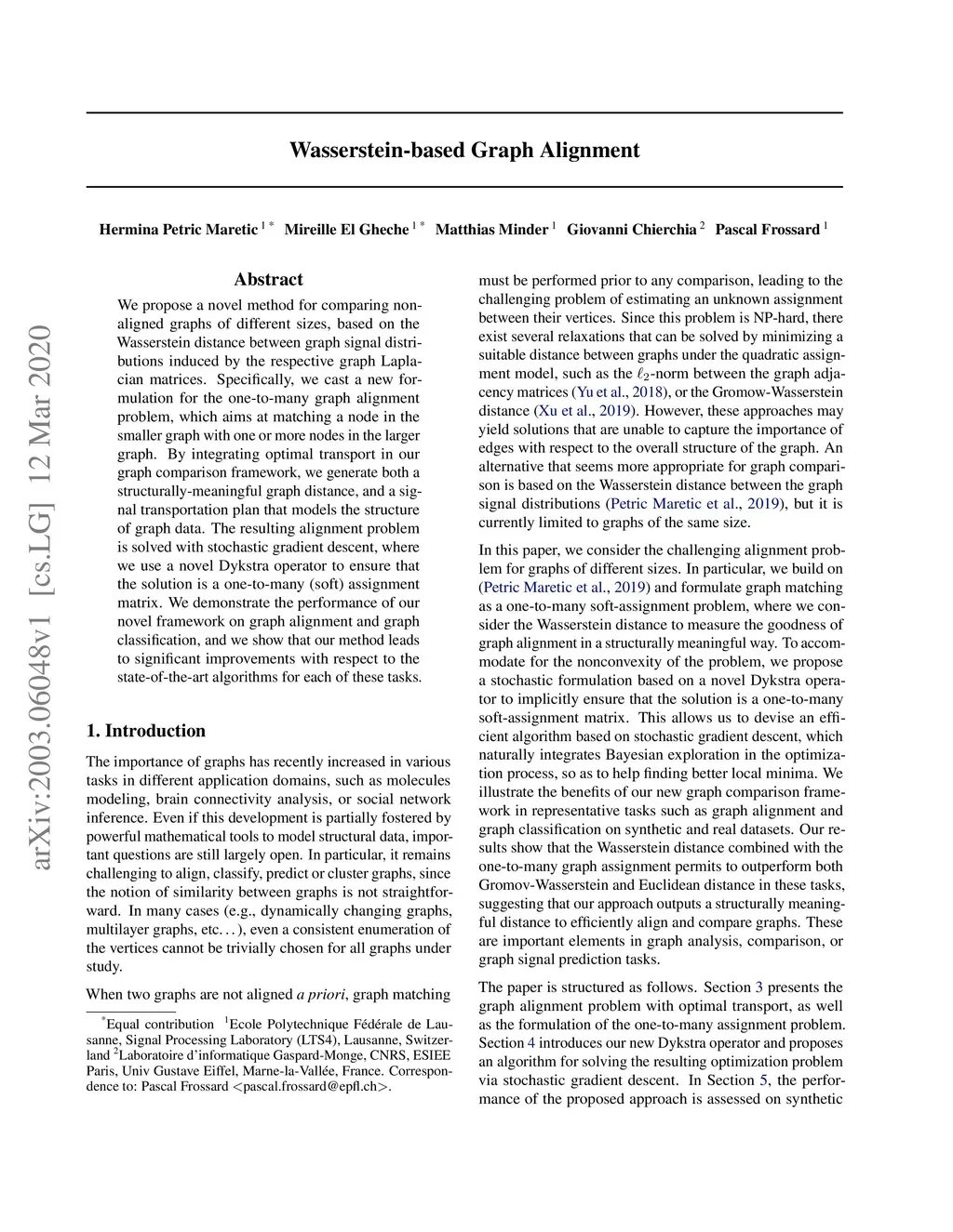 We propose a novel method for comparing non-aligned graphs of different sizes, based on the Wasserstein distance between graph signal distributions induced by the respective graph Laplacian matrices. Specifically, we cast a new formulation for the one-to-many graph alignment problem, which aims at matching a node in the smaller graph with one or more nodes in the larger graph. By integrating optimal transport in our graph comparison framework, we generate both a structurally-meaningful graph distance, and a signal transportation plan that models the structure of graph data. The resulting alignment problem is solved with stochastic gradient descent, where we use a novel Dykstra operator to ensure that the solution is a one-to-many (soft) assignment matrix. We demonstrate the performance of our novel framework on graph alignment and graph classification, and we show that our method leads to significant improvements with respect to the state-of-the-art algorithms for each of these tasks.