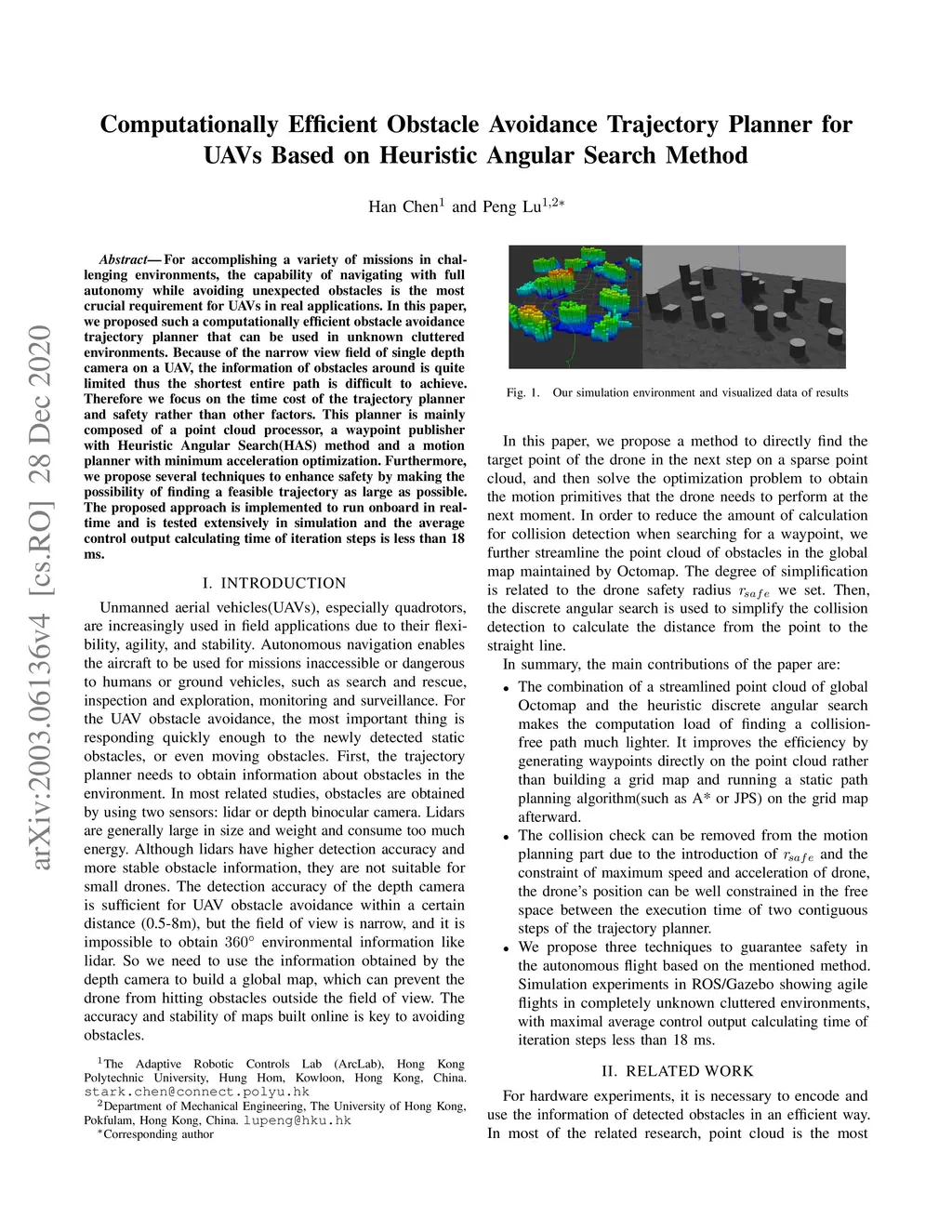 Computationally Efficient Obstacle Avoidance Trajectory Planner for UAVs