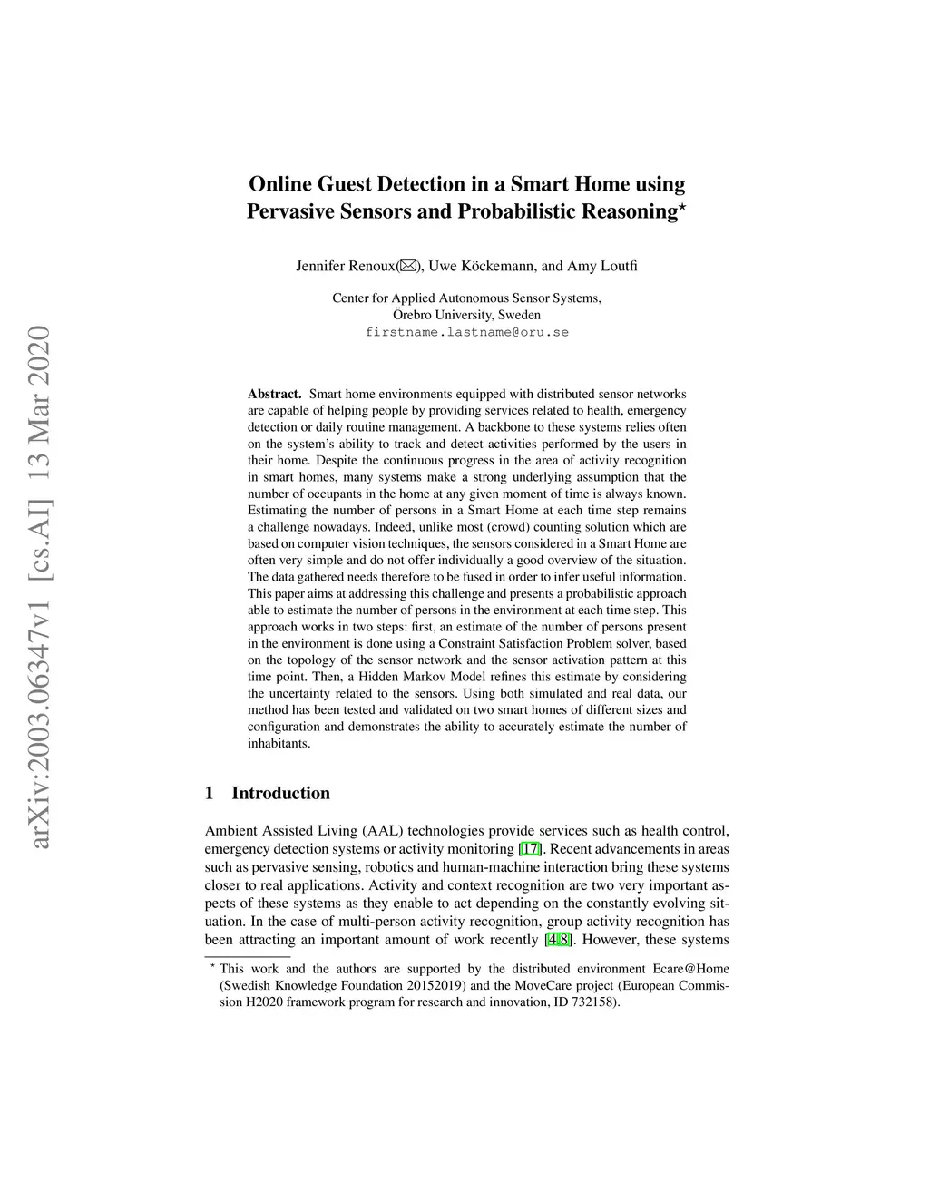 Online Guest Detection in a Smart Home using Pervasive Sensors and