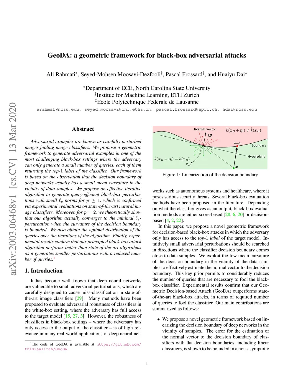 GeoDA: a geometric framework for black-box adversarial attacks
