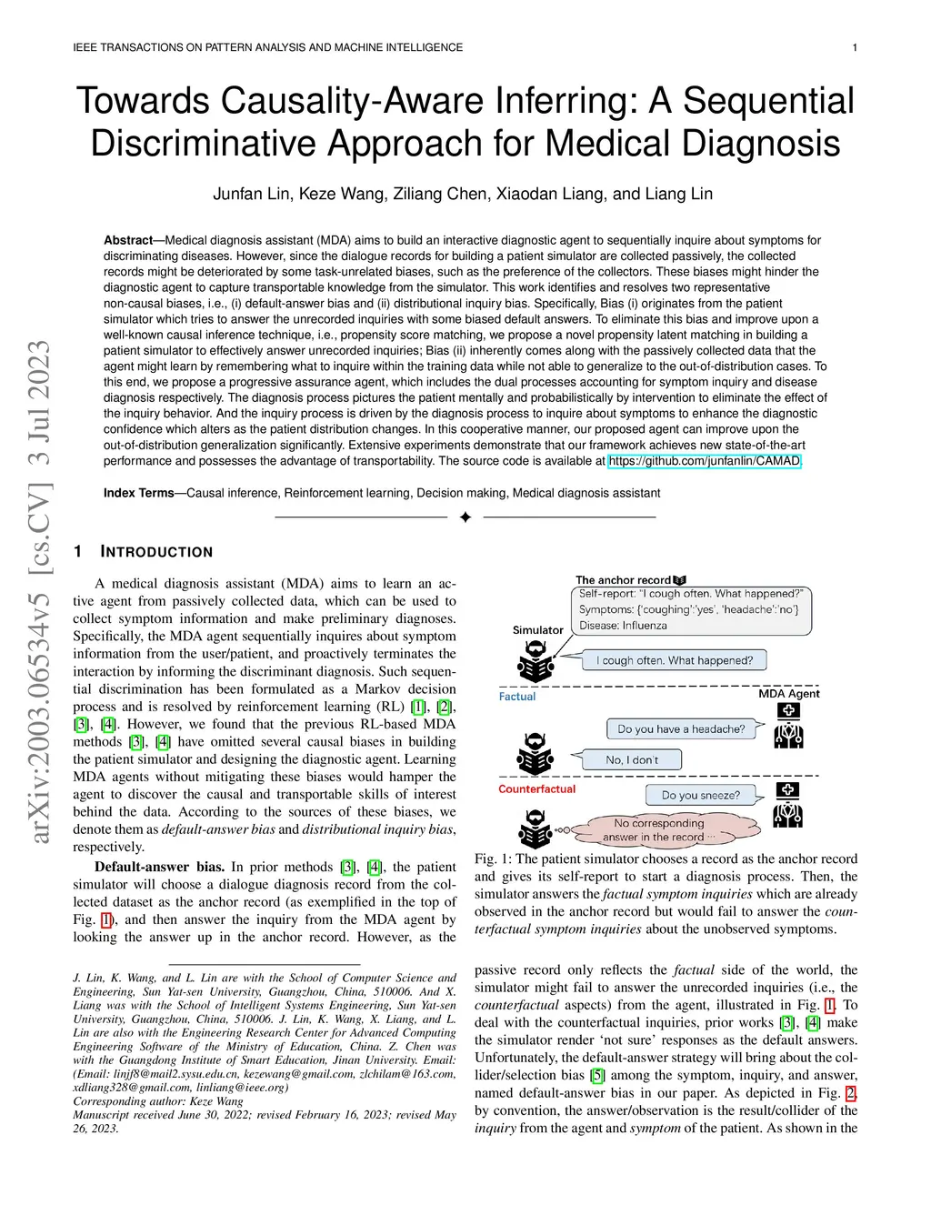 Medical diagnosis assistant (MDA) aims to build an interactive diagnostic agent to sequentially inquire about symptoms for discriminating diseases. However, since the dialogue records used to build a patient simulator are collected passively, the data might be deteriorated by some task-unrelated biases, such as the preference of the collectors. These biases might hinder the diagnostic agent to capture transportable knowledge from the simulator. This work attempts to address these critical issues in MDA by taking advantage of the causal diagram to identify and resolve two representative non-causal biases, i.e., (i) default-answer bias and (ii) distributional inquiry bias. Specifically, Bias (i) originates from the patient simulator which tries to answer the unrecorded inquiries with some biased default answers. Consequently, the diagnostic agents cannot fully demonstrate their advantages due to the biased answers. To eliminate this bias and inspired by the propensity score matching technique with causal diagram, we propose a propensity-based patient simulator to effectively answer unrecorded inquiry by drawing knowledge from the other records; Bias (ii) inherently comes along with the passively collected data, and is one of the key obstacles for training the agent towards "learning how" rather than "remembering what". For example, within the distribution of training data, if a symptom is highly coupled with a certain disease, the agent might learn to only inquire about that symptom to discriminate that disease, thus might not generalize to the out-of-distribution cases. To this end, we propose a progressive assurance agent, which includes the dual processes accounting for symptom inquiry and disease diagnosis respectively. The inquiry process is driven by the diagnosis process in a top-down manner to inquire about symptoms for enhancing diagnostic confidence.