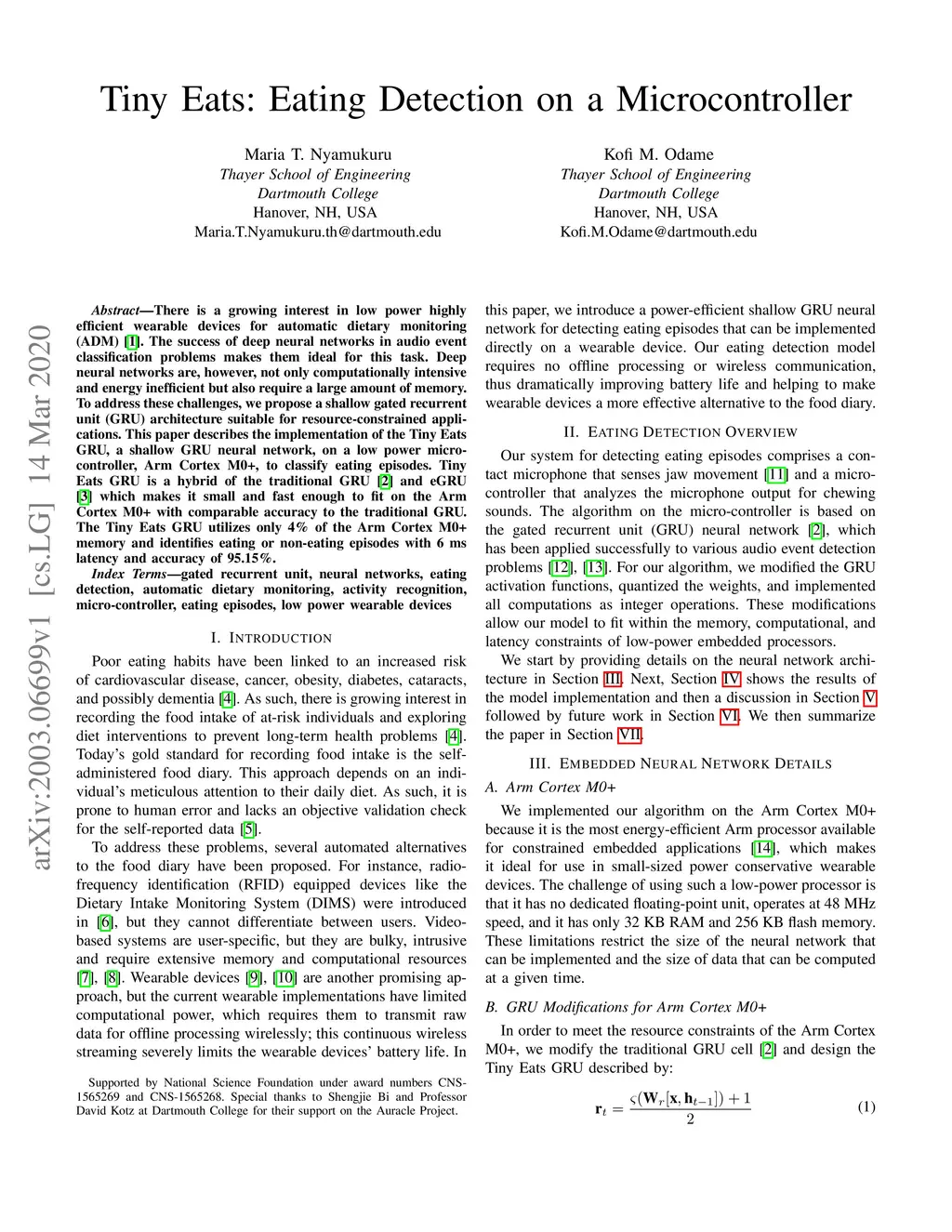 Tiny Eats: Eating Detection on a Microcontroller