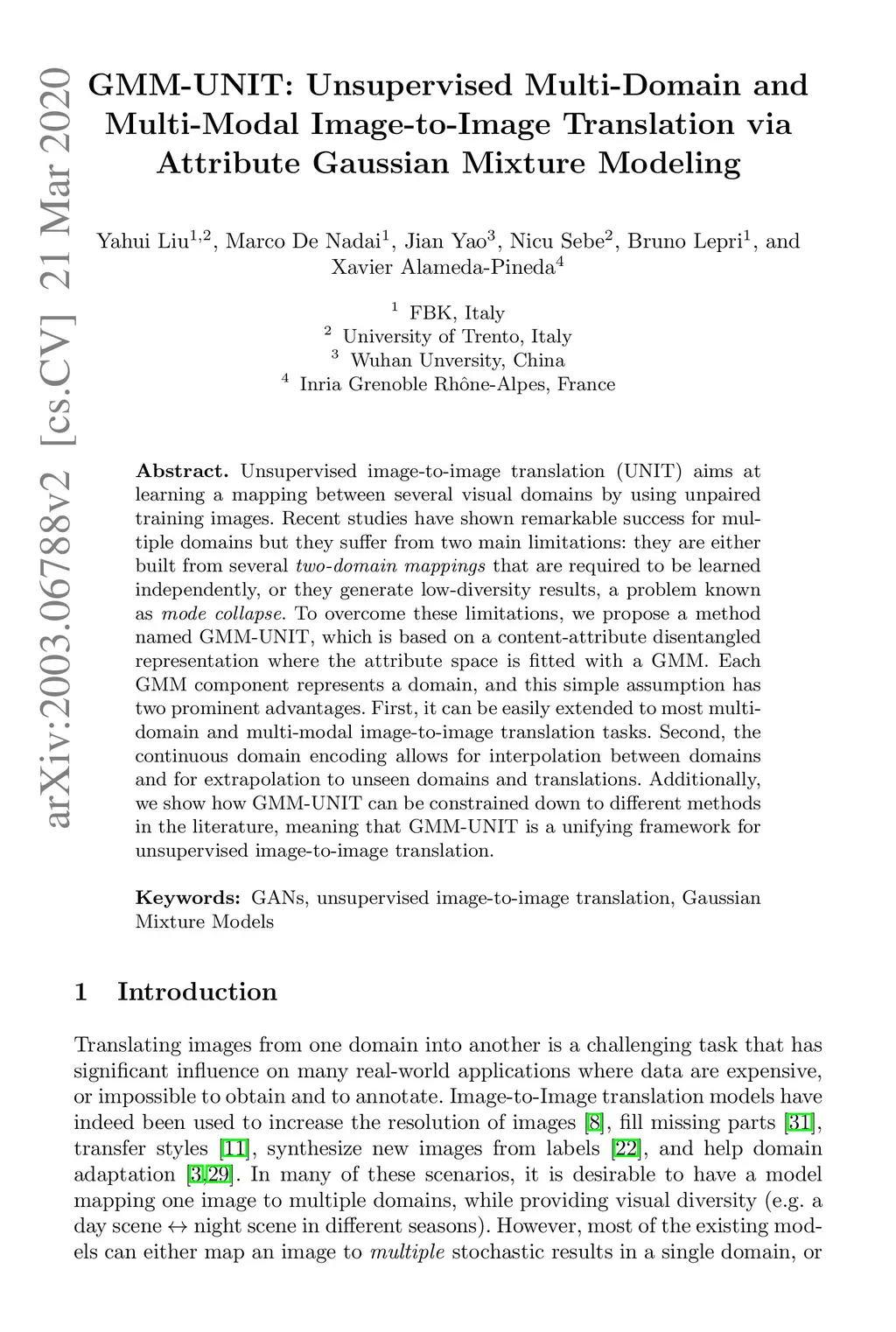 GMM-UNIT: Unsupervised Multi-Domain and Multi-Modal Image-to-Image