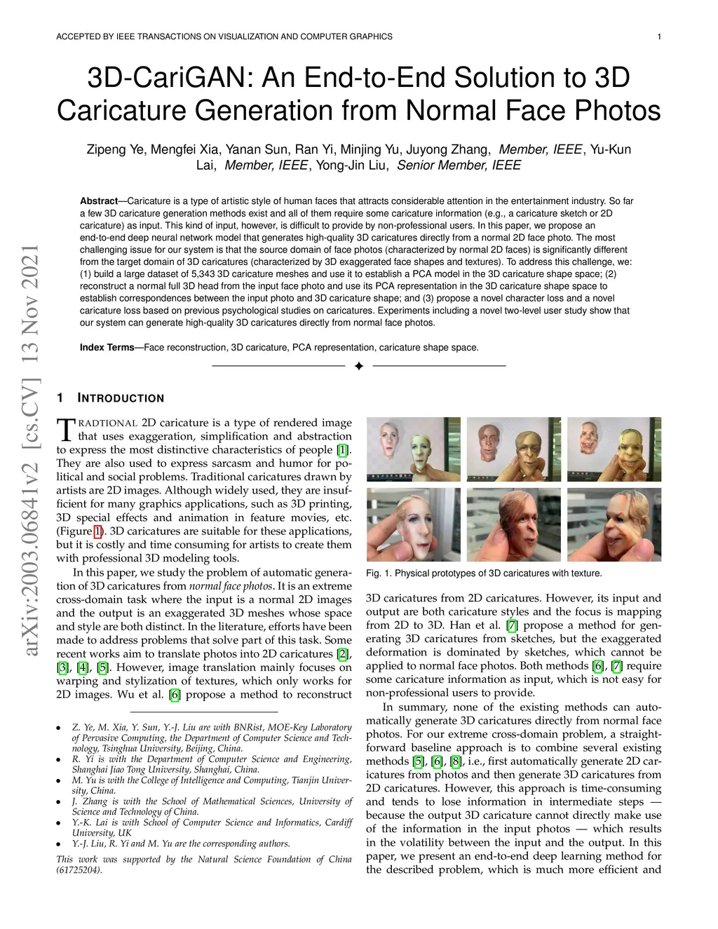 3D-CariGAN: An End-to-End Solution to 3D Caricature Generation from Face