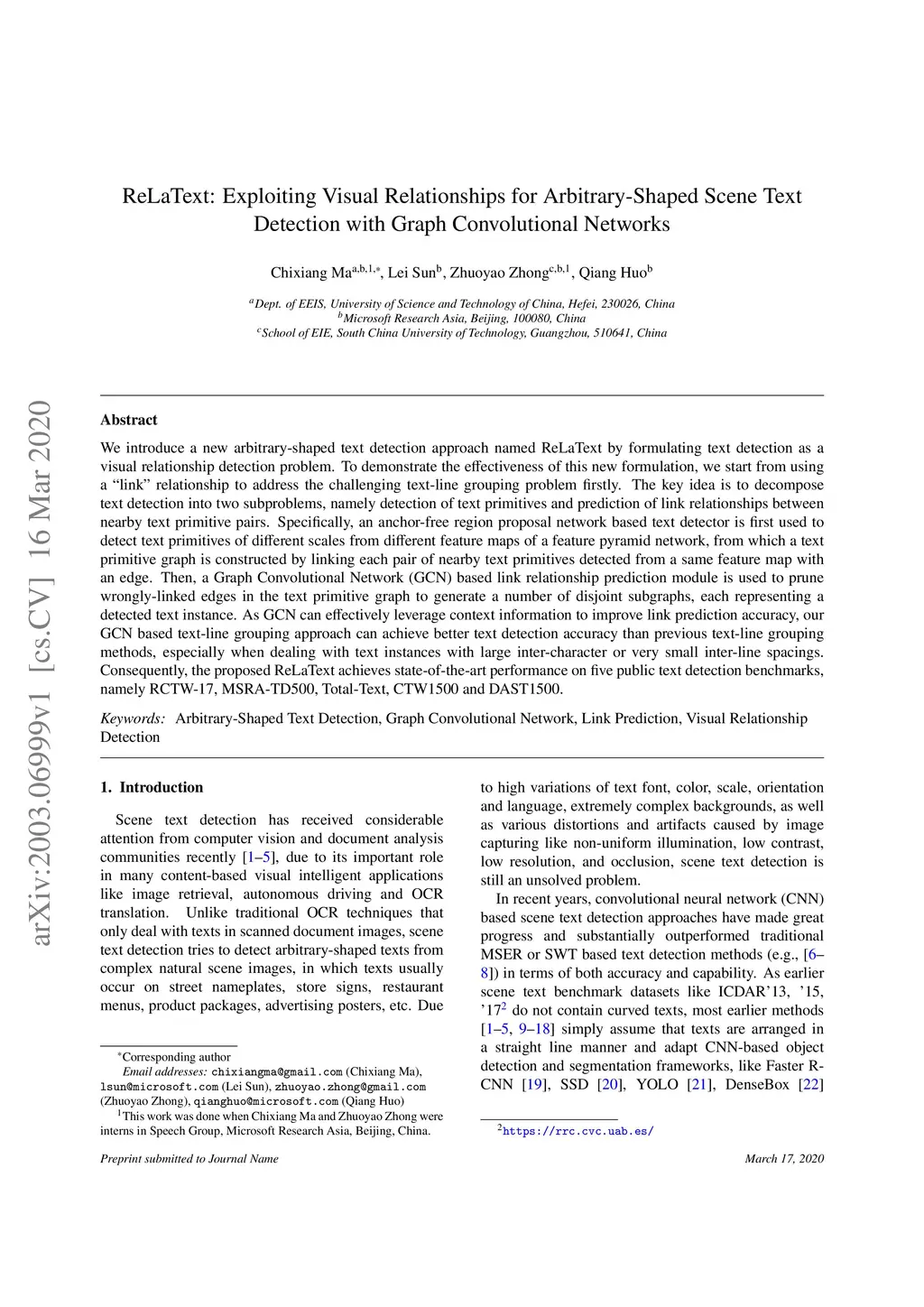 ReLaText: Exploiting Visual Relationships for Arbitrary-Shaped Scene