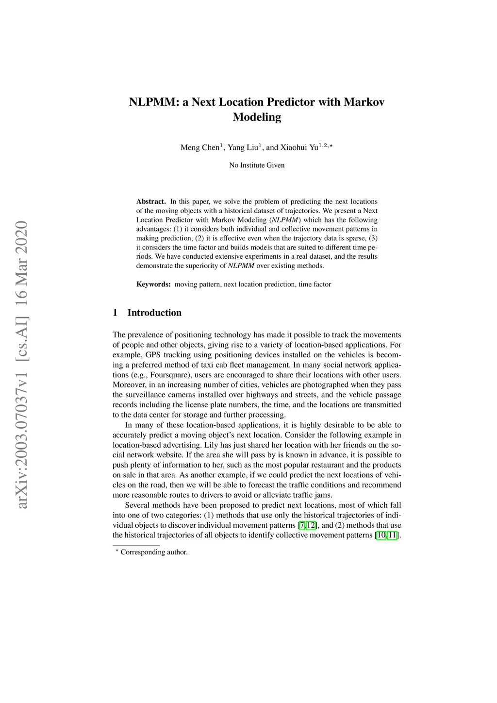 NLPMM: a Next Location Predictor with Markov Modeling