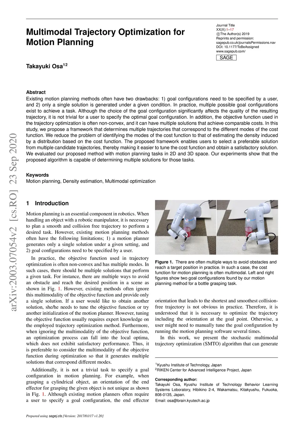 Existing motion planning methods often have two drawbacks: 1) goal configurations need to be specified by a user, and 2) only a single solution is generated under a given condition. In practice, multiple possible goal configurations exist to achieve a task. Although the choice of the goal configuration significantly affects the quality of the resulting trajectory, it is not trivial for a user to specify the optimal goal configuration. In addition, the objective function used in the trajectory optimization is often non-convex, and it can have multiple solutions that achieve comparable costs. In this study, we propose a framework that determines multiple trajectories that correspond to the different modes of the cost function. We reduce the problem of identifying the modes of the cost function to that of estimating the density induced by a distribution based on the cost function. The proposed framework enables users to select a preferable solution from multiple candidate trajectories, thereby making it easier to tune the cost function and obtain a satisfactory solution. We evaluated our proposed method with motion planning tasks in 2D and 3D space. Our experiments show that the proposed algorithm is capable of determining multiple solutions for those tasks.