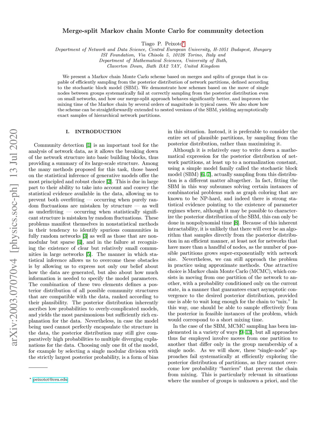 Merge-split Markov chain Monte Carlo for community detection