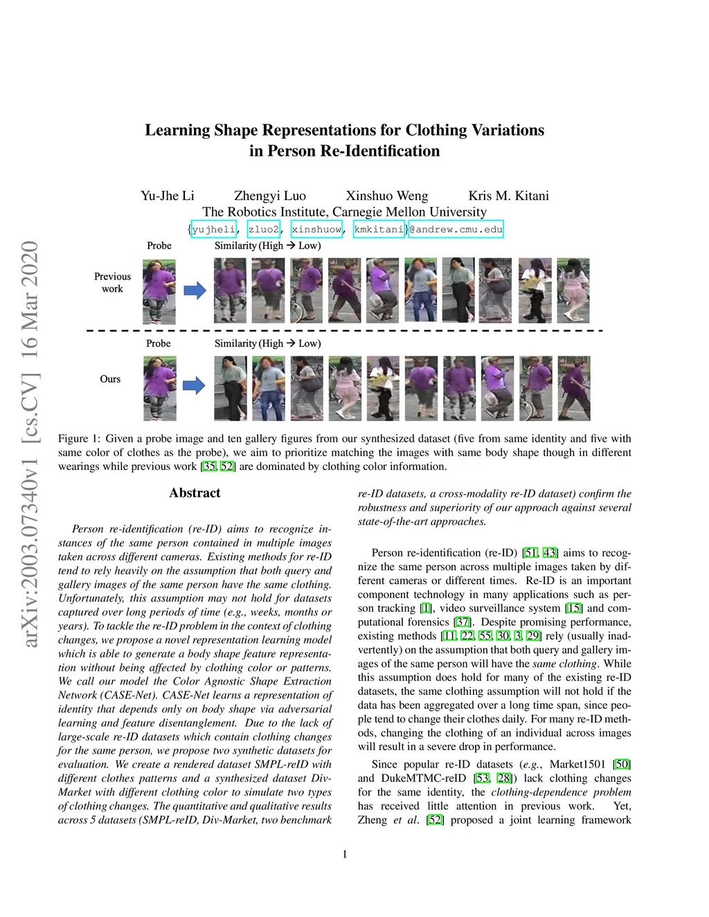 Learning Shape Representations for Clothing Variations in Person