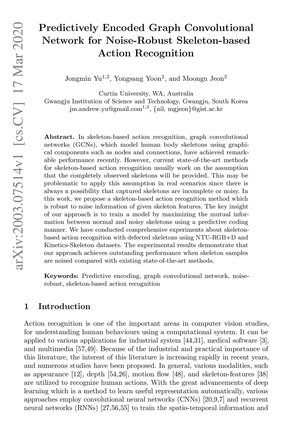 In skeleton-based action recognition, graph convolutional networks (GCNs), which model human body skeletons using graphical components such as nodes and connections, have achieved remarkable performance recently. However, current state-of-the-art methods for skeleton-based action recognition usually work on the assumption that the completely observed skeletons will be provided. This may be problematic to apply this assumption in real scenarios since there is always a possibility that captured skeletons are incomplete or noisy. In this work, we propose a skeleton-based action recognition method which is robust to noise information of given skeleton features. The key insight of our approach is to train a model by maximizing the mutual information between normal and noisy skeletons using a predictive coding manner. We have conducted comprehensive experiments about skeleton-based action recognition with defected skeletons using NTU-RGB+D and Kinetics-Skeleton datasets. The experimental results demonstrate that our approach achieves outstanding performance when skeleton samples are noised compared with existing state-of-the-art methods.