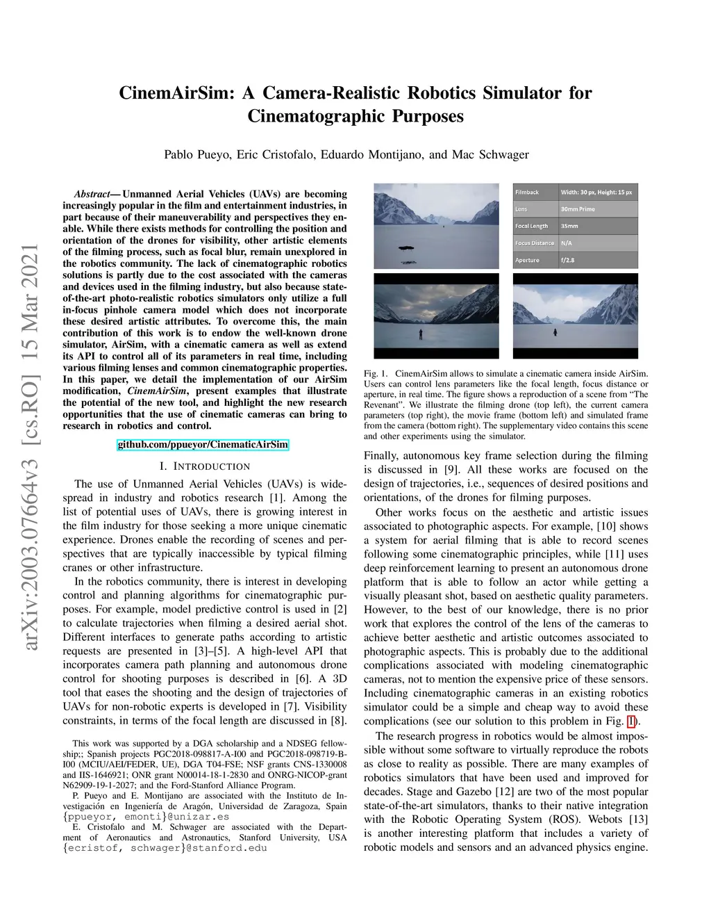 CinemAirSim: A Camera-Realistic Robotics Simulator for Cinematographic