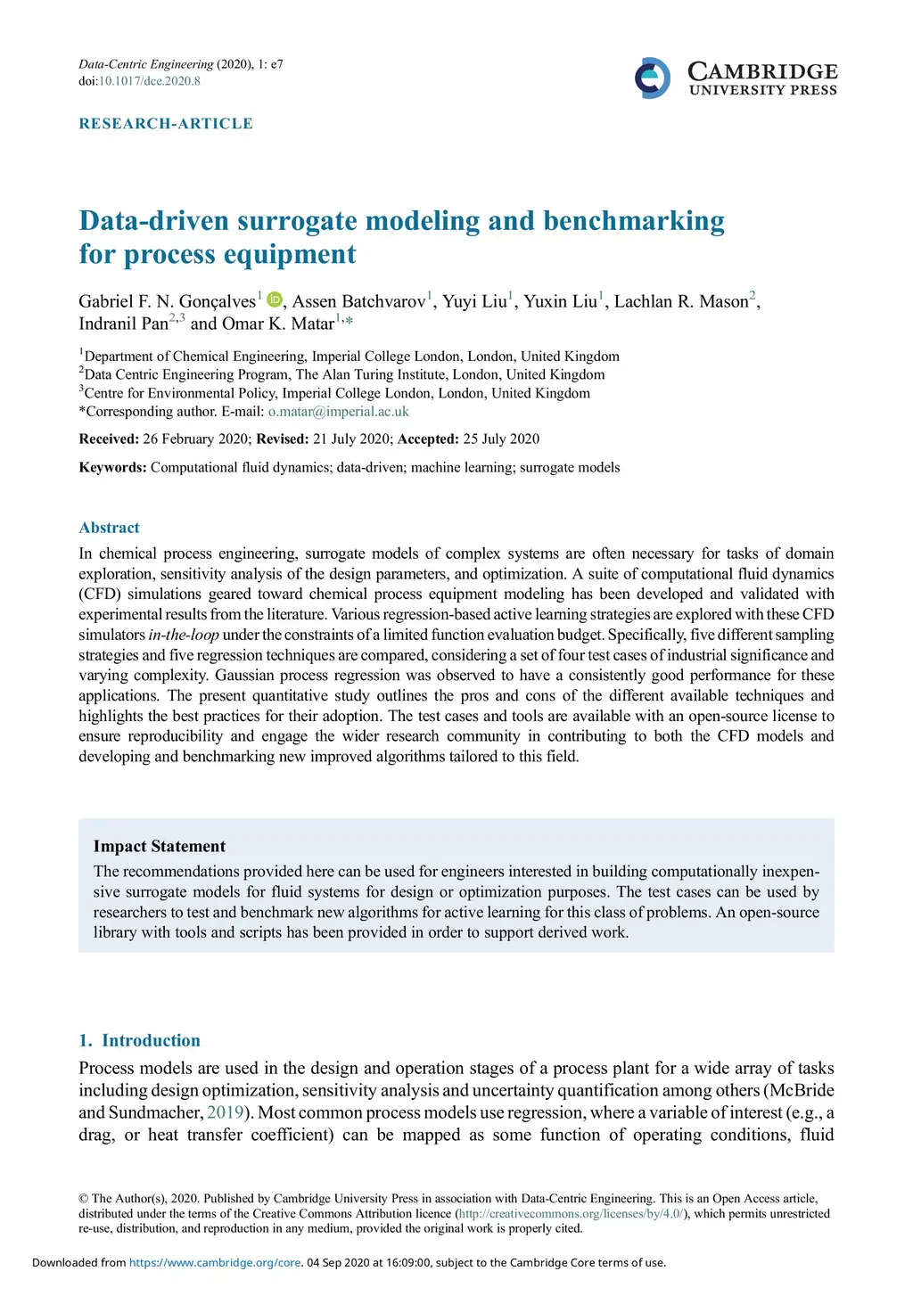 In chemical process engineering, surrogate models of complex systems are often necessary for tasks of domain exploration, sensitivity analysis of the design parameters, and optimization. A suite of computational fluid dynamics (CFD) simulations geared toward chemical process equipment modeling has been developed and validated with experimental results from the literature. Various regression-based active learning strategies are explored with these CFD simulators in-the-loop under the constraints of a limited function evaluation budget. Specifically, five different sampling strategies and five regression techniques are compared, considering a set of four test cases of industrial significance and varying complexity. Gaussian process regression was observed to have a consistently good performance for these applications. The present quantitative study outlines the pros and cons of the different available techniques and highlights the best practices for their adoption. The test cases and tools are available with an open-source license to ensure reproducibility and engage the wider research community in contributing to both the CFD models and developing and benchmarking new improved algorithms tailored to this field.