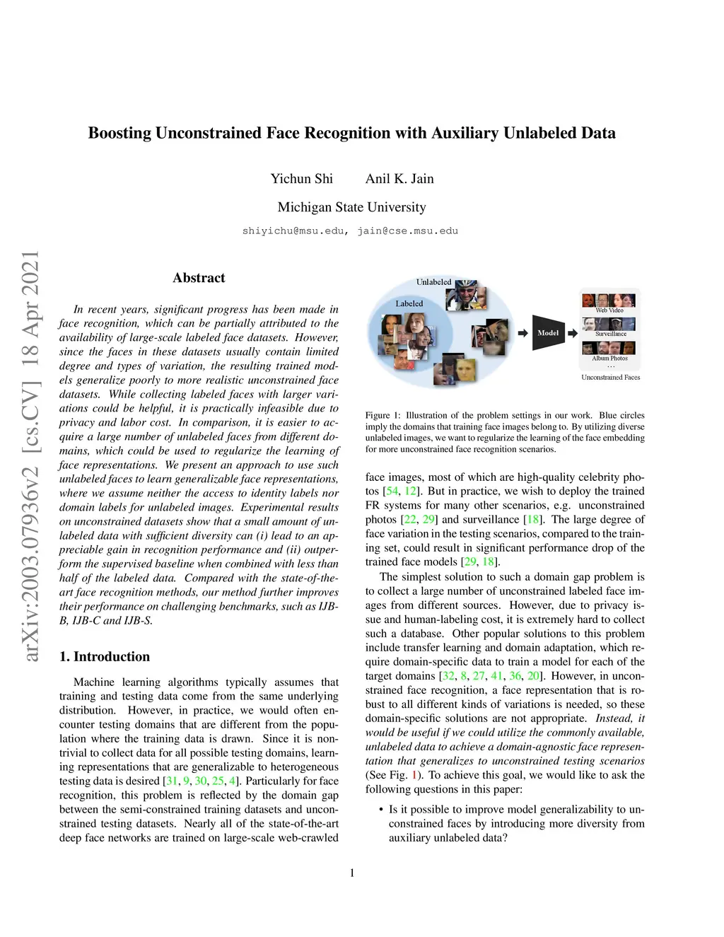 Boosting Unconstrained Face Recognition with Auxiliary Unlabeled Data