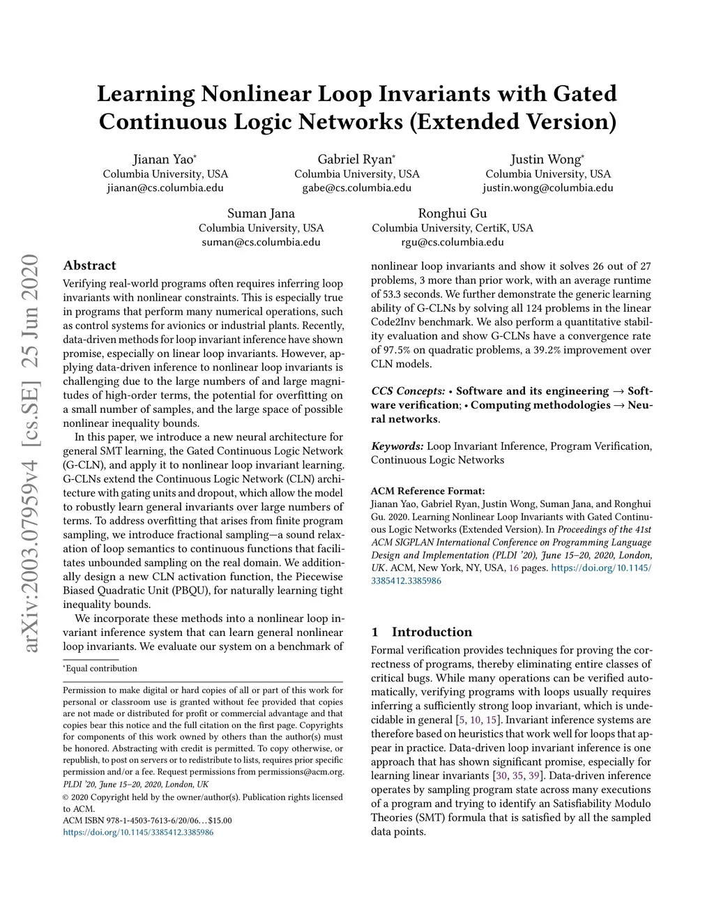 Learning Nonlinear Loop Invariants with Gated Continuous Logic Networks