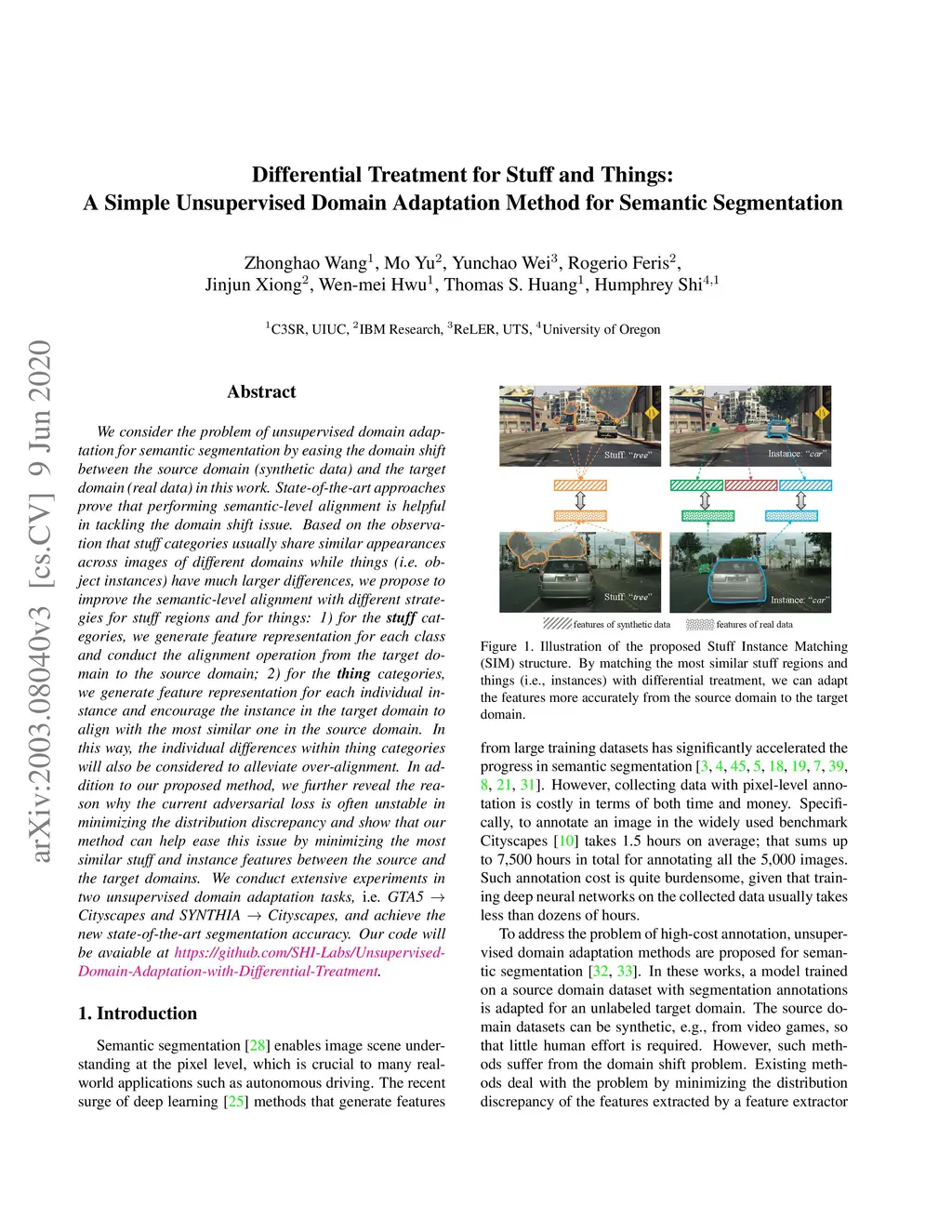 We consider the problem of unsupervised domain adaptation for semantic segmentation by easing the domain shift between the source domain (synthetic data) and the target domain (real data) in this work. State-of-the-art approaches prove that performing semantic-level alignment is helpful in tackling the domain shift issue. Based on the observation that stuff categories usually share similar appearances across images of different domains while things (i.e. object instances) have much larger differences, we propose to improve the semantic-level alignment with different strategies for stuff regions and for things: 1) for the stuff categories, we generate feature representation for each class and conduct the alignment operation from the target domain to the source domain; 2) for the thing categories, we generate feature representation for each individual instance and encourage the instance in the target domain to align with the most similar one in the source domain. In this way, the individual differences within thing categories will also be considered to alleviate over-alignment. In addition to our proposed method, we further reveal the reason why the current adversarial loss is often unstable in minimizing the distribution discrepancy and show that our method can help ease this issue by minimizing the most similar stuff and instance features between the source and the target domains. We conduct extensive experiments in two unsupervised domain adaptation tasks, i.e. GTA5 to Cityscapes and SYNTHIA to Cityscapes, and achieve the new state-of-the-art segmentation accuracy.