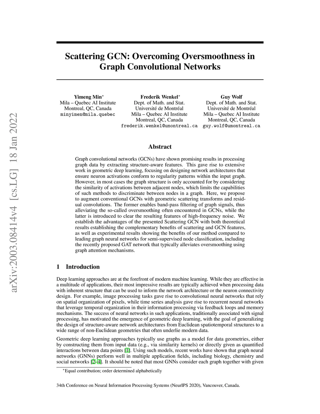 Graph convolutional networks (GCNs) have shown promising results in processing graph data by extracting structure-aware features. This gave rise to extensive work in geometric deep learning, focusing on designing network architectures that ensure neuron activations conform to regularity patterns within the input graph. However, in most cases the graph structure is only accounted for by considering the similarity of activations between adjacent nodes, which limits the capabilities of such methods to discriminate between nodes in a graph. Here, we propose to augment conventional GCNs with geometric scattering transforms and residual convolutions. The former enables band-pass filtering of graph signals, thus alleviating the so-called oversmoothing often encountered in GCNs, while the latter is introduced to clear the resulting features of high-frequency noise. We establish the advantages of the presented Scattering GCN with both theoretical results establishing the complementary benefits of scattering and GCN features, as well as experimental results showing the benefits of our method compared to leading graph neural networks for semi-supervised node classification, including the recently proposed GAT network that typically alleviates oversmoothing using graph attention mechanisms.