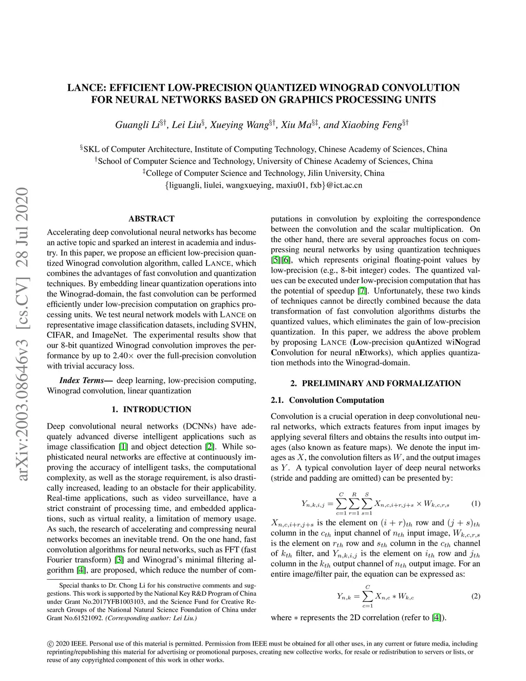 LANCE: Efficient Low-Precision Quantized Winograd Convolution for Neural