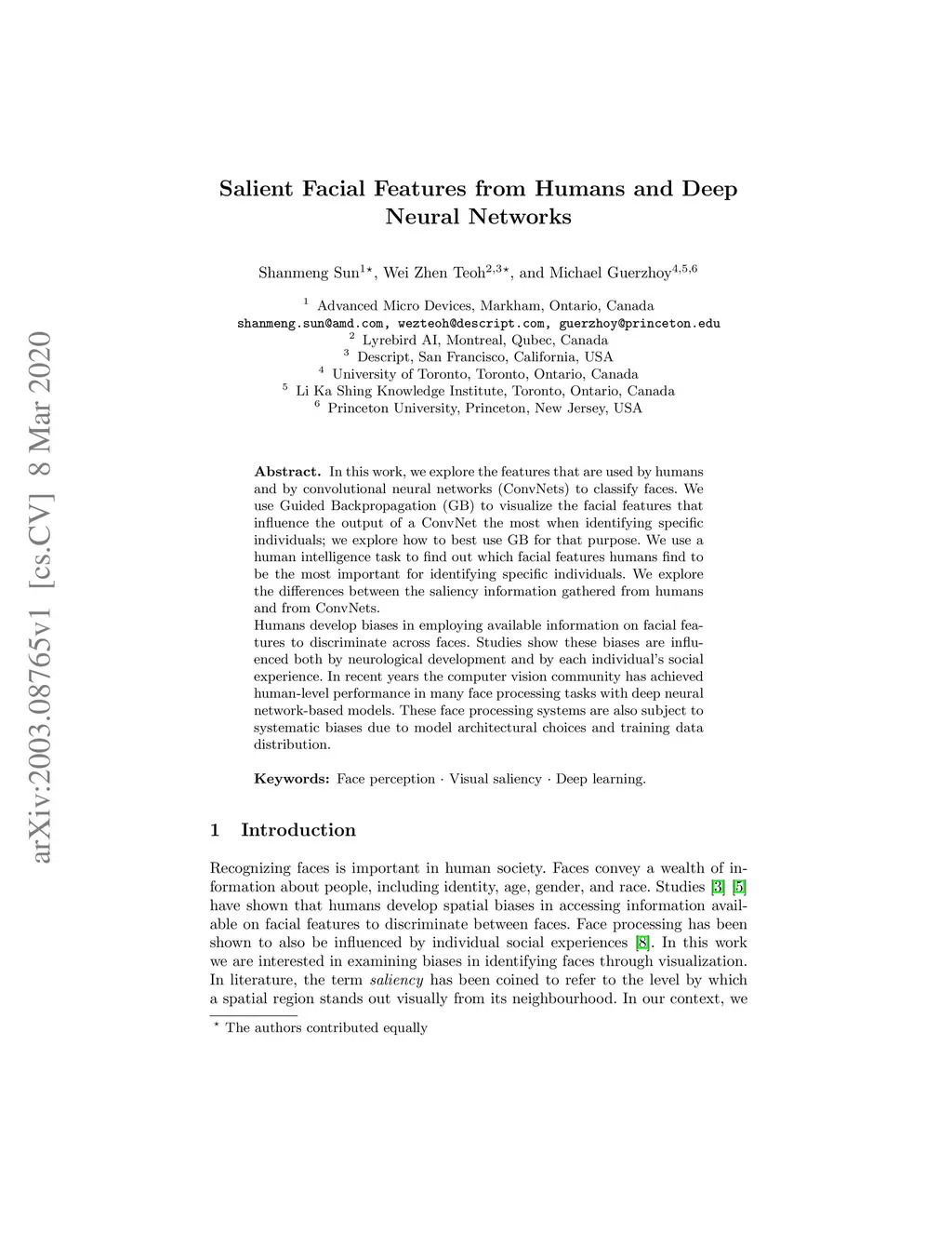 Salient Facial Features from Humans and Deep Neural Networks