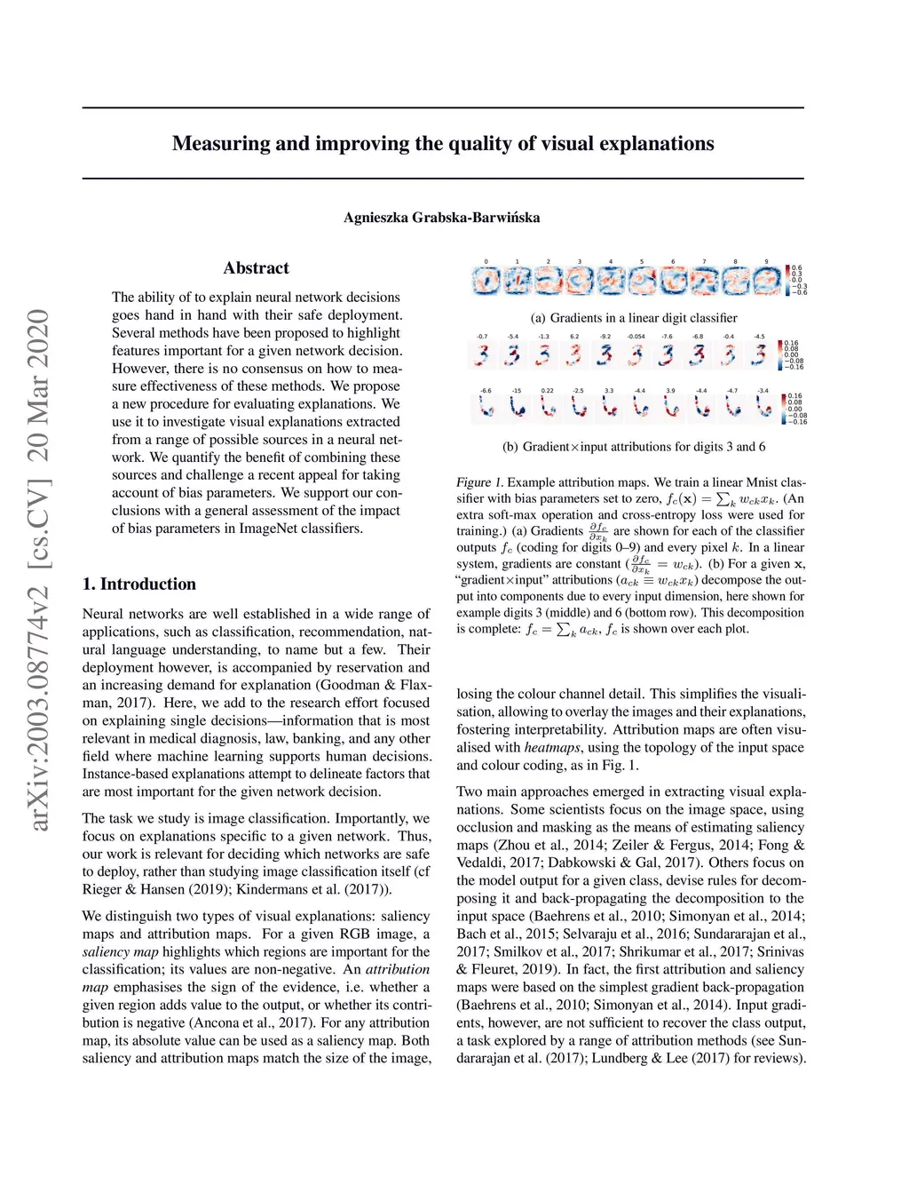 The ability of to explain neural network decisions goes hand in hand with their safe deployment. Several methods have been proposed to highlight features important for a given network decision. However, there is no consensus on how to measure effectiveness of these methods. We propose a new procedure for evaluating explanations. We use it to investigate visual explanations extracted from a range of possible sources in a neural network. We quantify the benefit of combining these sources and challenge a recent appeal for taking bias parameters into account. We support our conclusions with a general assessment of the impact of bias parameters in ImageNet classifiers