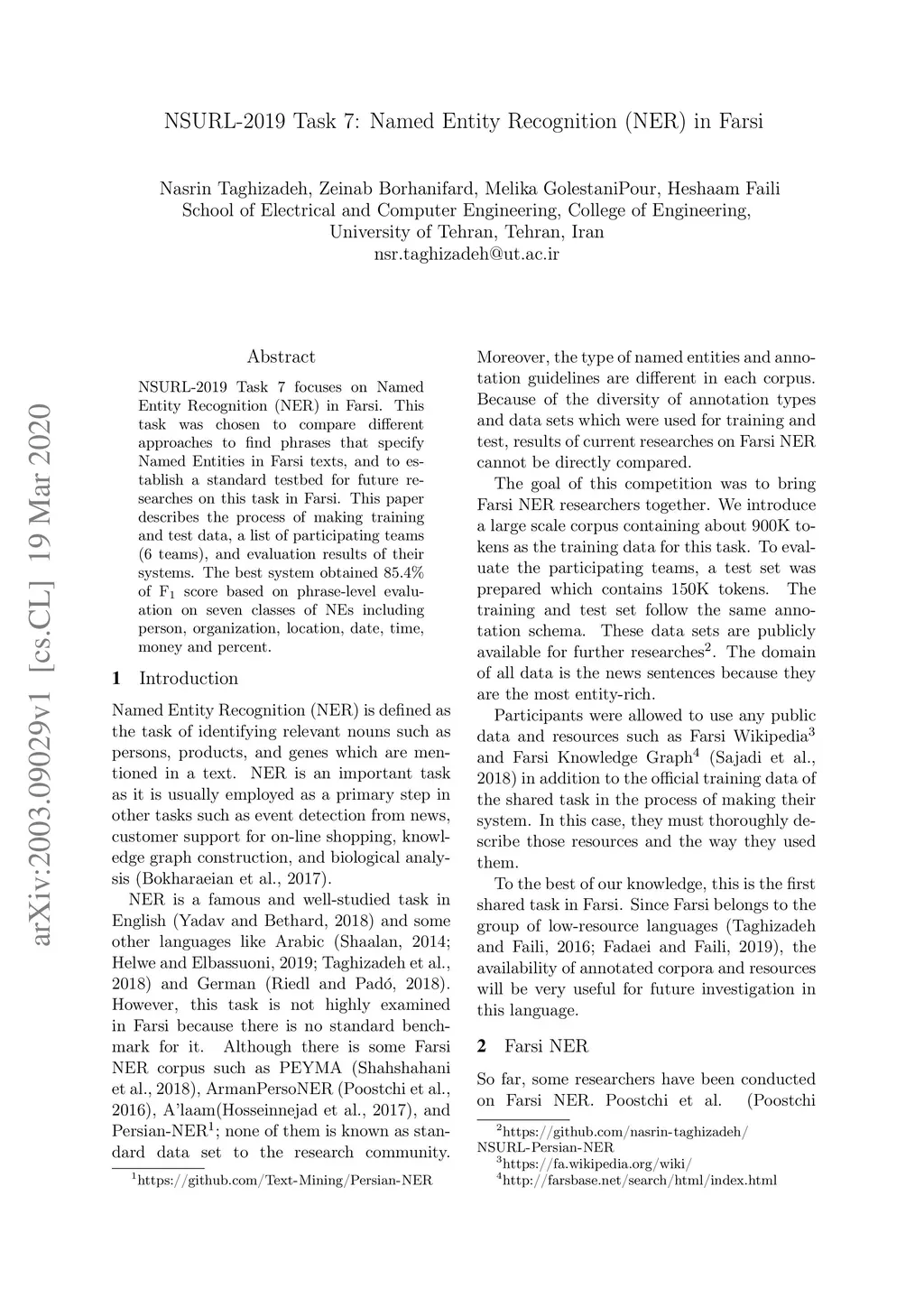 NSURL-2019 Task 7: Named Entity Recognition (NER) in Farsi