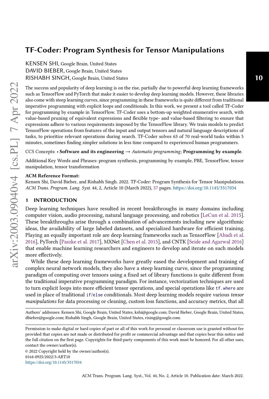 TF-Coder: Program Synthesis for Tensor Manipulations