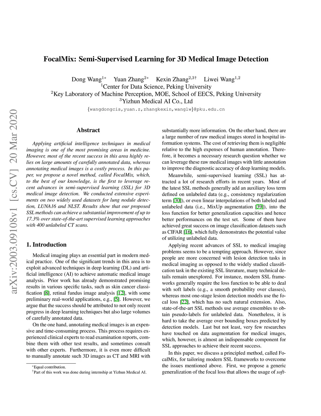 FocalMix: Semi-Supervised Learning for 3D Medical Image Detection