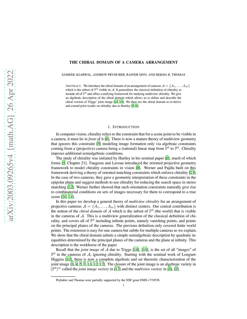 The Chiral Domain of a Camera Arrangement