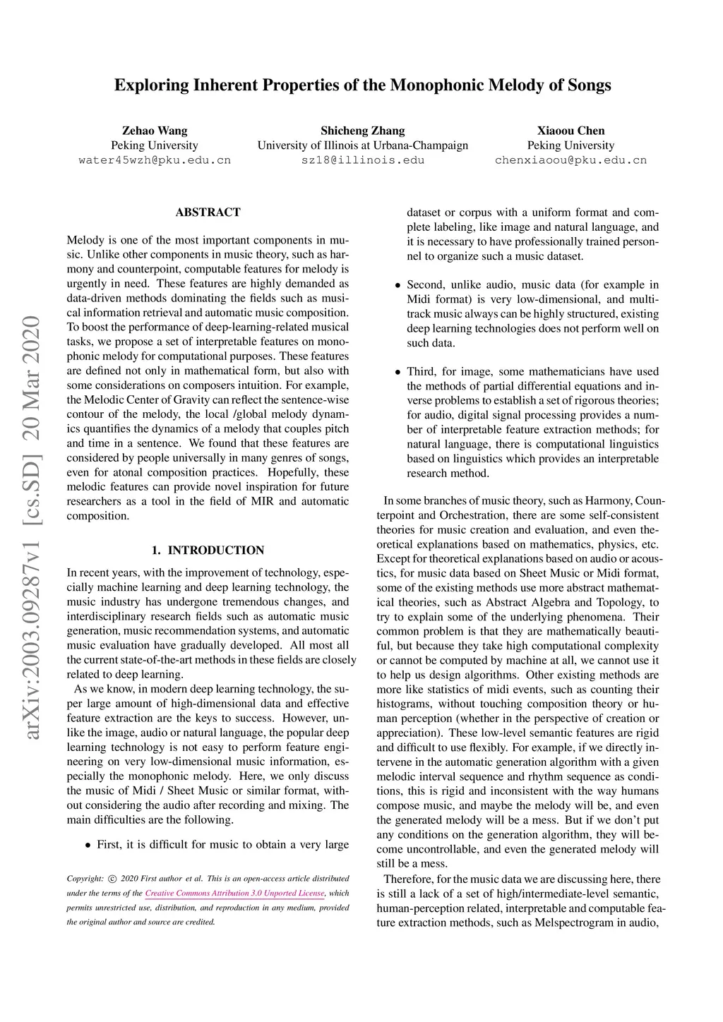 Exploring Inherent Properties of the Monophonic Melody of Songs