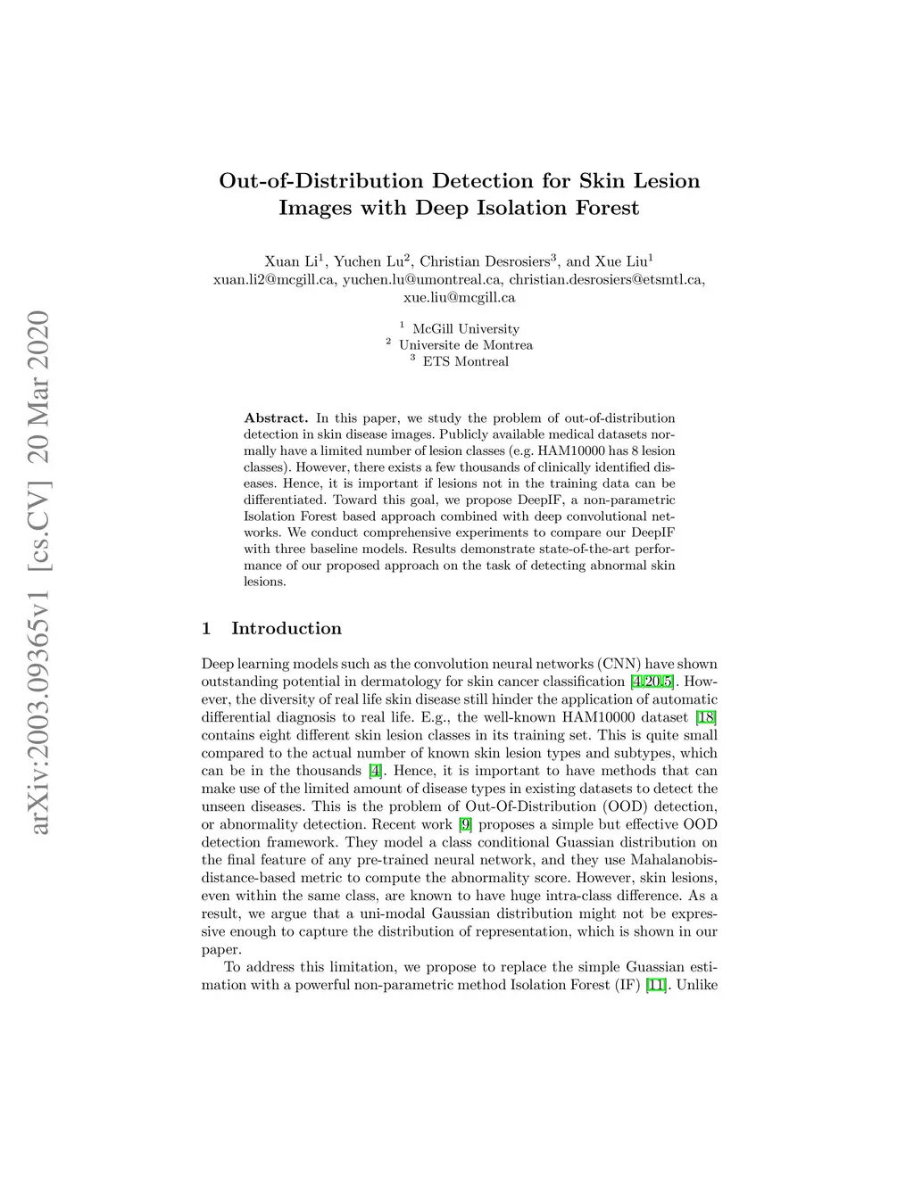 In this paper, we study the problem of out-of-distribution detection in skin disease images. Publicly available medical datasets normally have a limited number of lesion classes (e.g. HAM10000 has 8 lesion classes). However, there exists a few thousands of clinically identified diseases. Hence, it is important if lesions not in the training data can be differentiated. Toward this goal, we propose DeepIF, a non-parametric Isolation Forest based approach combined with deep convolutional networks. We conduct comprehensive experiments to compare our DeepIF with three baseline models. Results demonstrate state-of-the-art performance of our proposed approach on the task of detecting abnormal skin lesions.