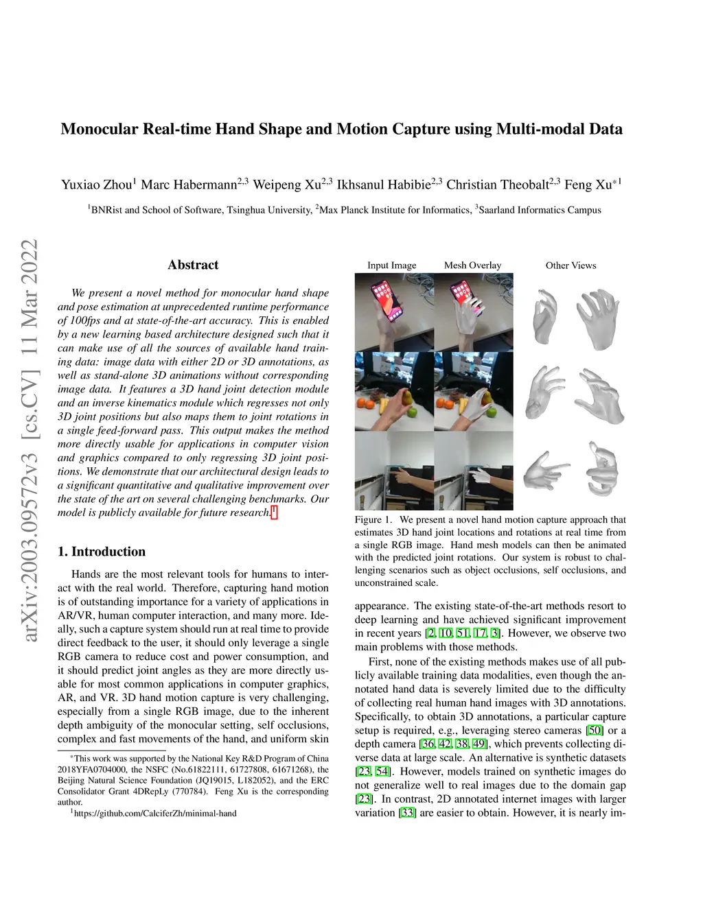 Monocular Real-time Hand Shape and Motion Capture using Multi-modal Data