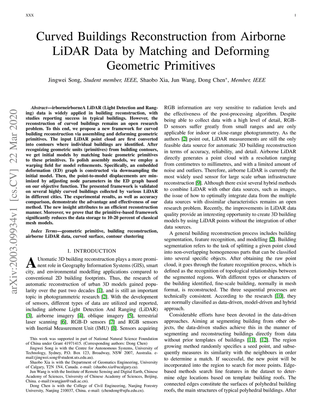 Curved Buildings Reconstruction from Airborne LiDAR Data by Matching and