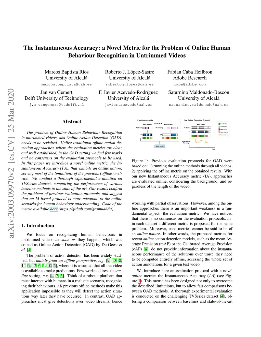 The problem of Online Human Behaviour Recognition in untrimmed videos, aka Online Action Detection (OAD), needs to be revisited. Unlike traditional offline action detection approaches, where the evaluation metrics are clear and well established, in the OAD setting we find few works and no consensus on the evaluation protocols to be used. In this paper we introduce a novel online metric, the Instantaneous Accuracy (), that exhibits an \emph{online} nature, solving most of the limitations of the previous (offline) metrics. We conduct a thorough experimental evaluation on TVSeries dataset, comparing the performance of various baseline methods to the state of the art. Our results confirm the problems of previous evaluation protocols, and suggest that an IA-based protocol is more adequate to the online scenario for human behaviour understanding. Code of the metric available https://github.com/gramuah/ia