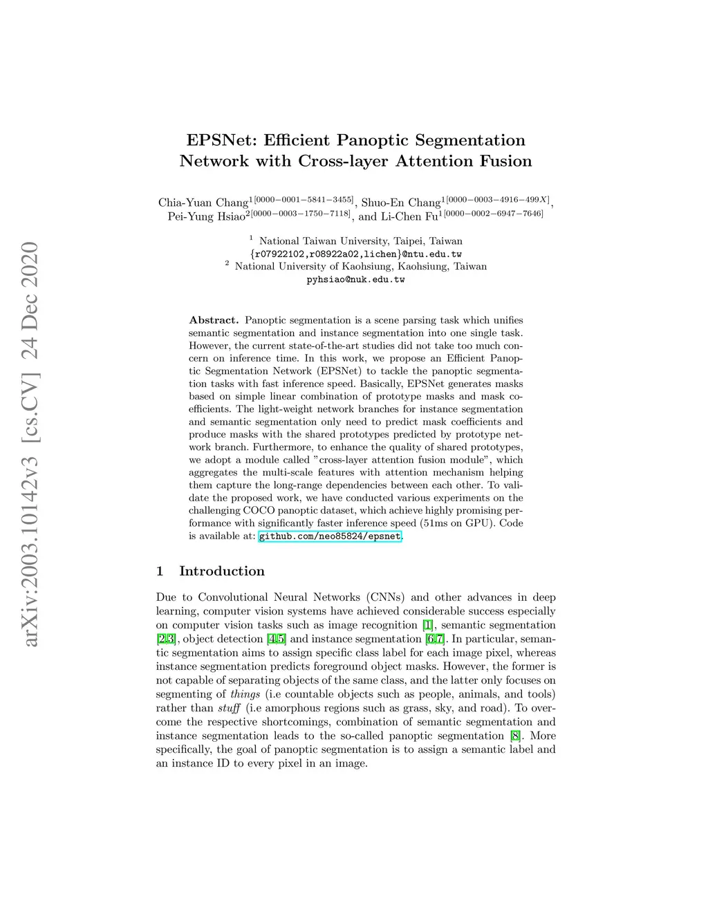 EPSNet: Efficient Panoptic Segmentation Network with Cross-layer