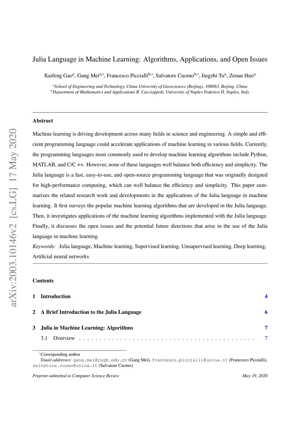 Julia Language in Machine Learning: Algorithms, Applications, and Open