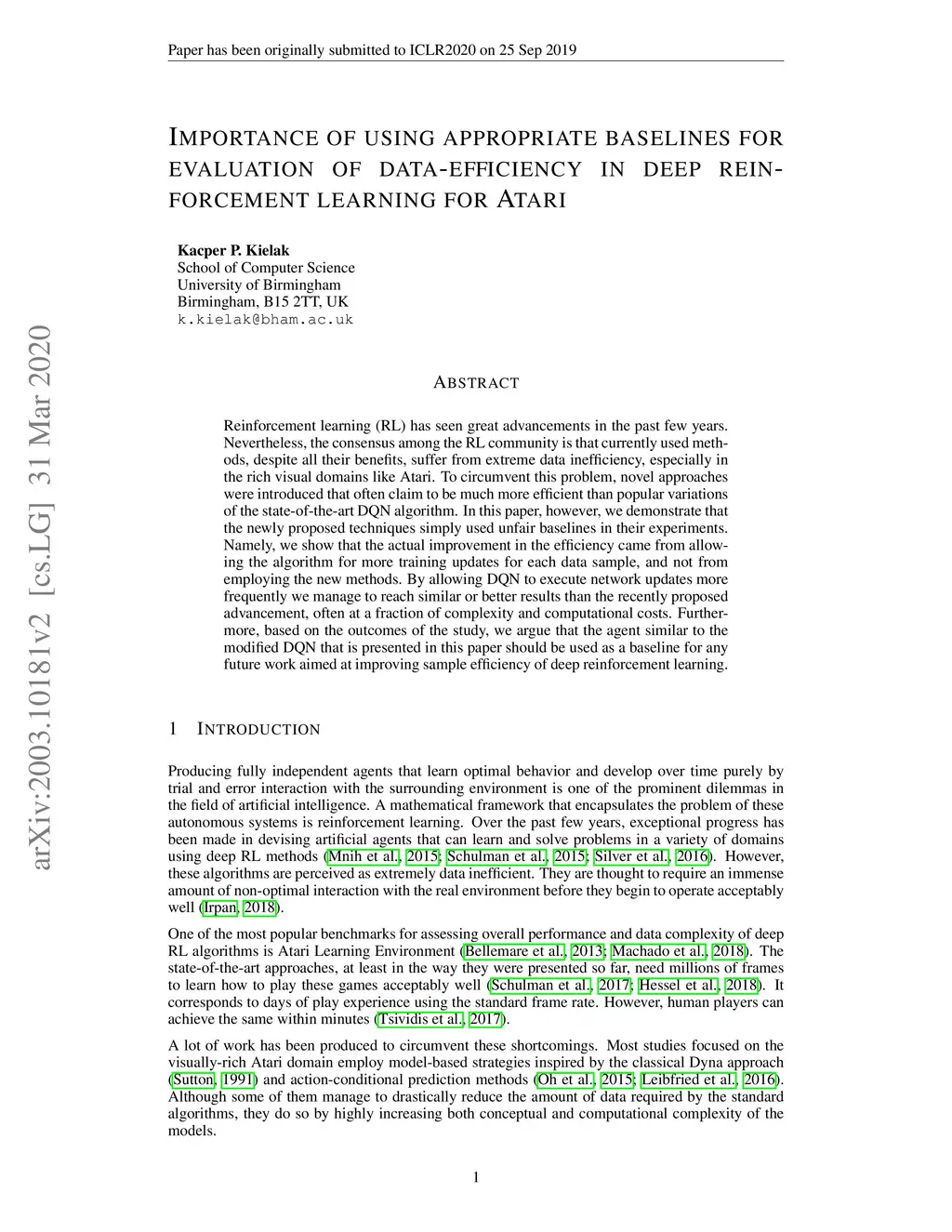 Reinforcement learning (RL) has seen great advancements in the past few years. Nevertheless, the consensus among the RL community is that currently used methods, despite all their benefits, suffer from extreme data inefficiency, especially in the rich visual domains like Atari. To circumvent this problem, novel approaches were introduced that often claim to be much more efficient than popular variations of the state-of-the-art DQN algorithm. In this paper, however, we demonstrate that the newly proposed techniques simply used unfair baselines in their experiments. Namely, we show that the actual improvement in the efficiency came from allowing the algorithm for more training updates for each data sample, and not from employing the new methods. By allowing DQN to execute network updates more frequently we manage to reach similar or better results than the recently proposed advancement, often at a fraction of complexity and computational costs. Furthermore, based on the outcomes of the study, we argue that the agent similar to the modified DQN that is presented in this paper should be used as a baseline for any future work aimed at improving sample efficiency of deep reinforcement learning.