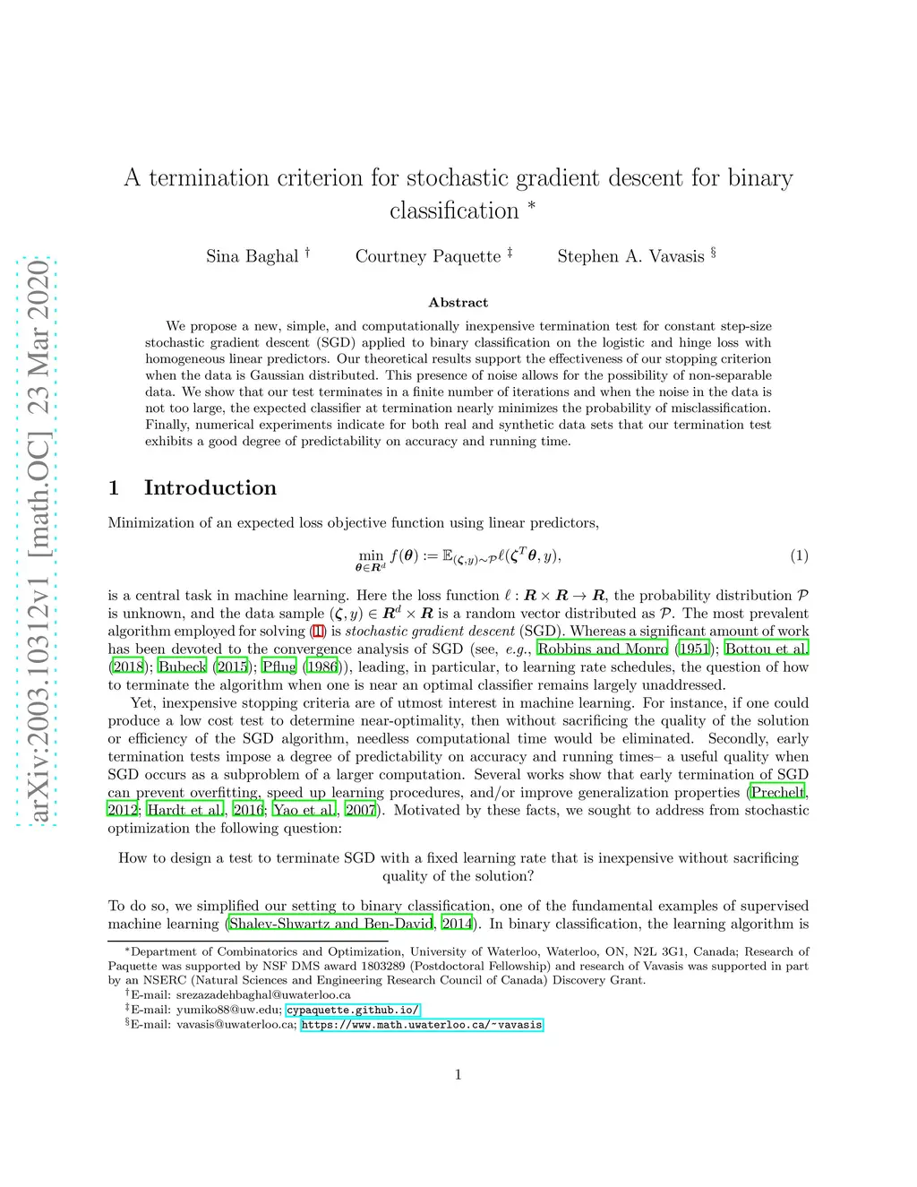A termination criterion for stochastic gradient descent for binary