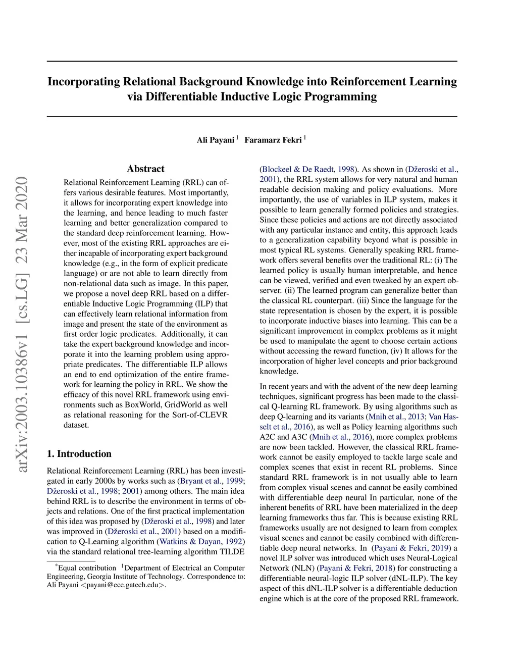 Relational Reinforcement Learning (RRL) can offers various desirable features. Most importantly, it allows for incorporating expert knowledge into the learning, and hence leading to much faster learning and better generalization compared to the standard deep reinforcement learning. However, most of the existing RRL approaches are either incapable of incorporating expert background knowledge (e.g., in the form of explicit predicate language) or are not able to learn directly from non-relational data such as image. In this paper, we propose a novel deep RRL based on a differentiable Inductive Logic Programming (ILP) that can effectively learn relational information from image and present the state of the environment as first order logic predicates. Additionally, it can take the expert background knowledge and incorporate it into the learning problem using appropriate predicates. The differentiable ILP allows an end to end optimization of the entire framework for learning the policy in RRL. We show the efficacy of this novel RRL framework using environments such as BoxWorld, GridWorld as well as relational reasoning for the Sort-of-CLEVR dataset.