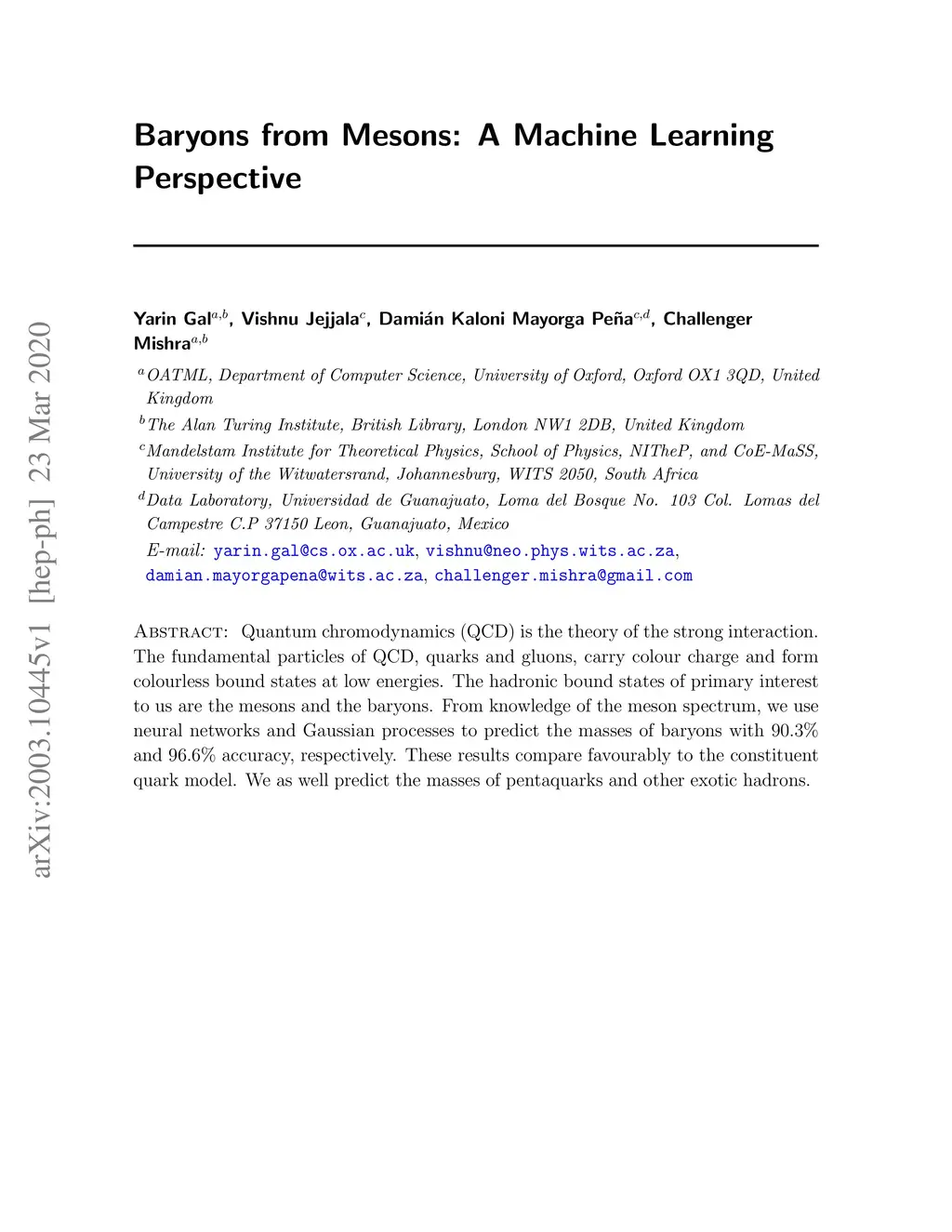 Quantum chromodynamics (QCD) is the theory of the strong interaction. The fundamental particles of QCD, quarks and gluons, carry colour charge and form colourless bound states at low energies. The hadronic bound states of primary interest to us are the mesons and the baryons. From knowledge of the meson spectrum, we use neural networks and Gaussian processes to predict the masses of baryons with 90.3% and 96.6% accuracy, respectively. These results compare favourably to the constituent quark model. We as well predict the masses of pentaquarks and other exotic hadrons.